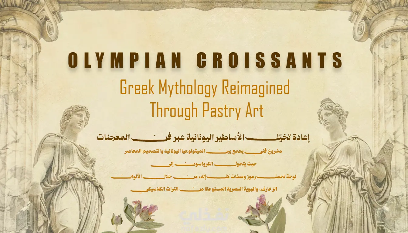 في هذا المشروع، لا يظهر الإله بشكله التقليدي، بل يتم تمثيل جوهر كل إله ورموزه وصفاته من خلال تصميم الكرواسون كل قطعة كرواسون تصبح لوحة بصرية تعبّر عن الإله عبر الألوان، الزخارف، والرموز اليونانية المستوحاة من أسطورته.