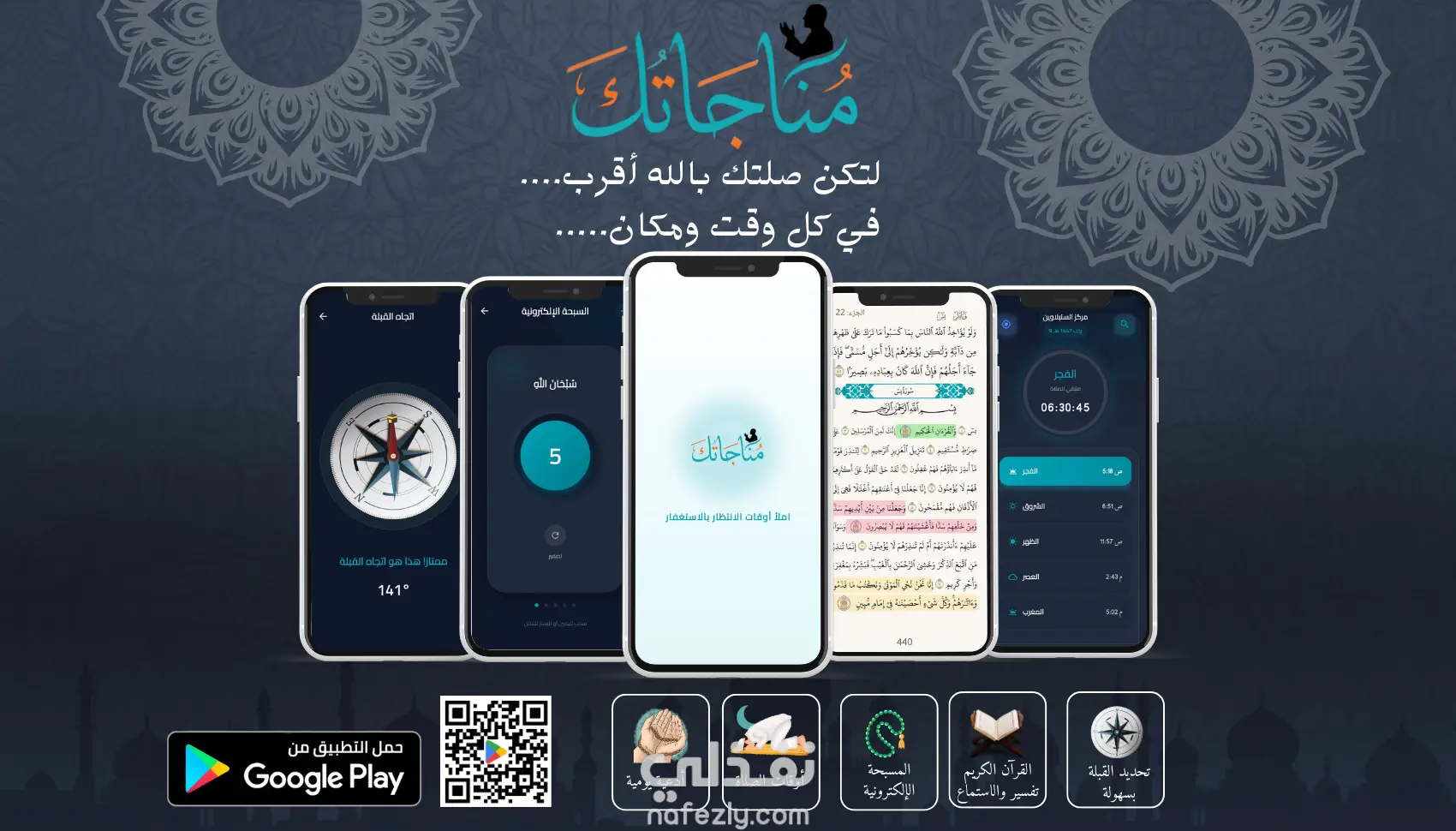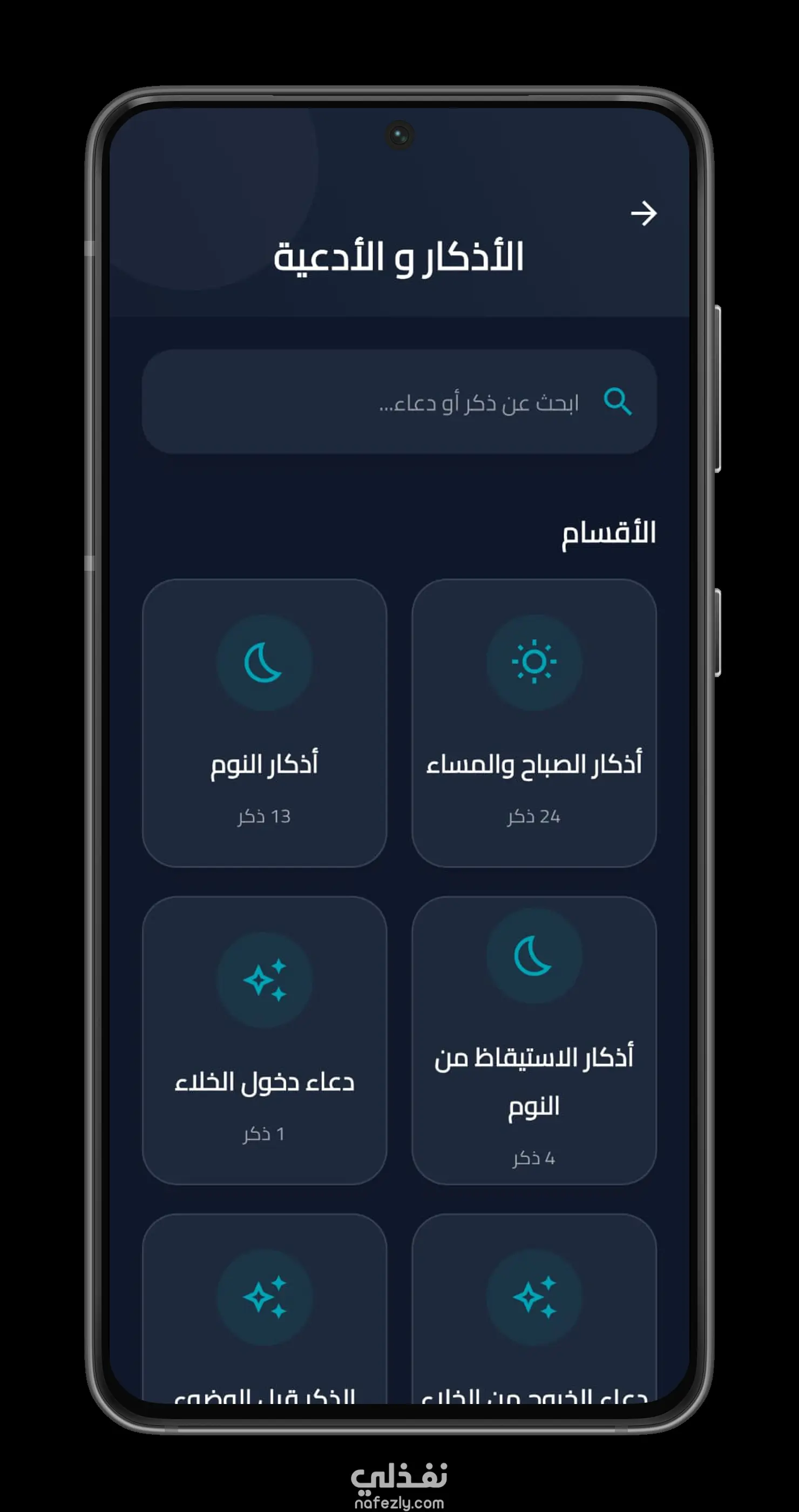 تطبيقات الأذكار، الأدعية، القرآن الكريم، المحتوى الديني، والتنبيهات الإسلامية،