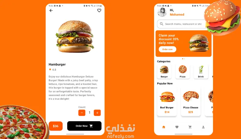تطبيق متكامل لطلب الطعام تم تطويره باستخدام Kotlin وJetpack Compose، يتميز بواجهة حديثة وسهلة الاستخدام، ويغطي جميع الاحتياجات الأساسية للمستخدم. يوفر التطبيق إمكانية تصفح الوجبات والأصناف المتنوعة، مع عرض التفاصيل الكاملة لكل وجبة من صورة وسعر وتقييم ووصف. يمكن للمستخدم إضافة الوجبات إلى السلة، متابعة المشتريات، ثم إتمام عملية الدفع والطلب بسهولة. التطبيق مدعوم بقاعدة بيانات متكاملة (Firebase/REST API) مما يتيح تخزين وعرض البيانات بشكل لحظي، مع دعم لتحديثات مباشرة لجميع العمليات. أبرز المميزات: واجهة مستخدم عصرية وسلسة بـ Jetpack Compose. بنية فول ستاك متكاملة (واجهة أمامية + قاعدة بيانات خلفية). نظام مصادقة شامل (تسجيل حساب جديد – تسجيل الدخول – تسجيل الخروج). تصنيفات ديناميكية للأطعمة (برجر – بيتزا – أصناف متعددة). سلة تسوق مع تحديث لحظي وإمكانية الإتمام بسهولة. تتبع الطلبات عبر الخرائط لمعرفة حالة التوصيل. ⭐ تقييم المنتجات وعرض مراجعات المستخدمين. تجربة سلسة وسريعة مع دعم التحديث الفوري للبيانات. هذا التطبيق يعكس قدراتي كمطور فول ستاك في بناء تطبيق شامل يغطي دورة الاستخدام كاملة، بدءًا من التصميم الأمامي وحتى إدارة البيانات الخلفية، مع التركيز على الأداء، السلاسة، وتجربة المستخدم.
