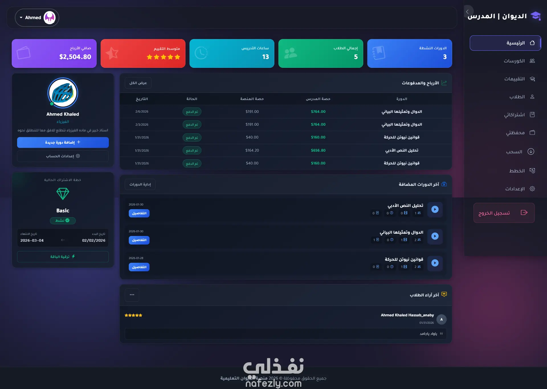 منصة تعليمية مصممة للطلاب والمدرسين، تعتمد على نظام كورسات قائم على الاشتراكات.