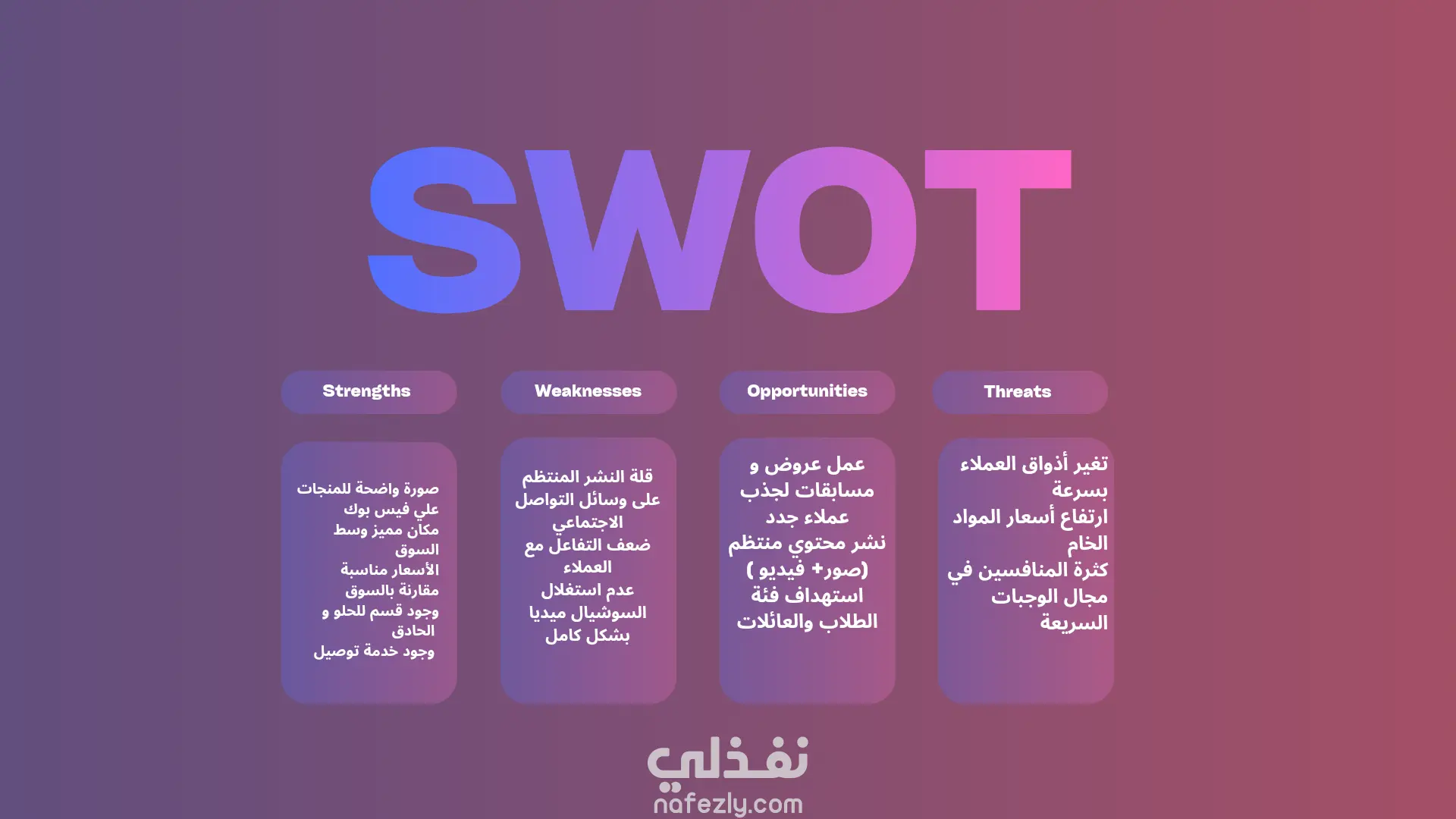 هل تمتلك موقعًا إلكترونيًا أو حسابات على مواقع التواصل الاجتماعي لكنك تعاني من ضعف التفاعل؟ هل ترغب في معرفة الفرص الحقيقية لتطوير مشروعك، وتحديد التهديدات المحتملة قبل أن تؤثر على نموك؟ هل تريد التعرف على نقاط القوة لتعزيزها، ونقاط الضعف لتفاديها؟ أنت في المكان الصحيح. أنا متخصصة في التسويق الإلكتروني بخبرة تزيد عن 3 سنوات، أعمل باستخدام أحدث الأدوات والتقنيات لتحليل السوق المستهدف وبناء استراتيجيات فعّالة تساعد على تحقيق أهداف المشروع وزيادة فرص النجاح. أقدم لك تحليل SWOT احترافي في ملف PDF منظم يشمل: نقاط القوة التي يتميز بها مشروعك. نقاط الضعف التي تؤثر على الأداء. فرص التطوير والنمو المتاحة. التهديدات والمخاطر التي يجب الانتباه لها. يتم تسليم التحليل في صفحة واحدة مركزة وواضحة تساعدك على اتخاذ قرارات صحيحة. في حال رغبتك في خطة تسويقية متكاملة، فهي متوفرة ضمن خدماتي الأخرى. سعيدة بالتعاون معك، وشكرًا لاختيارك لي.