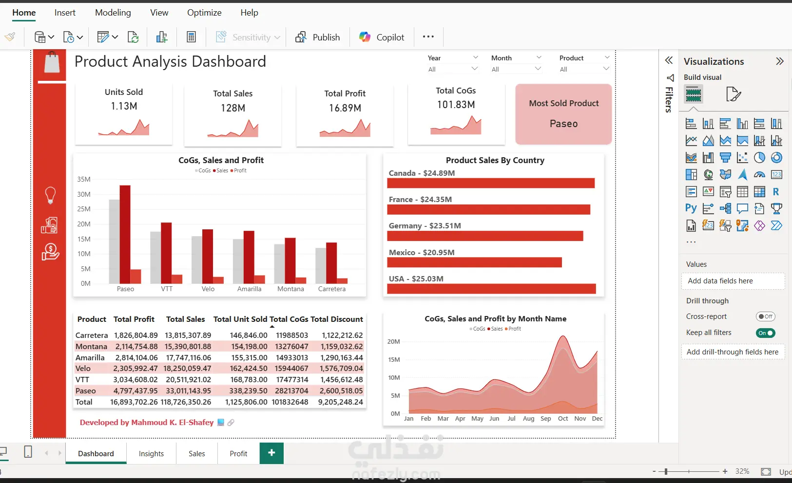 تحليل شامل لأداء المبيعات وبناء لوحة بيانات تفاعلية (Dashboard).