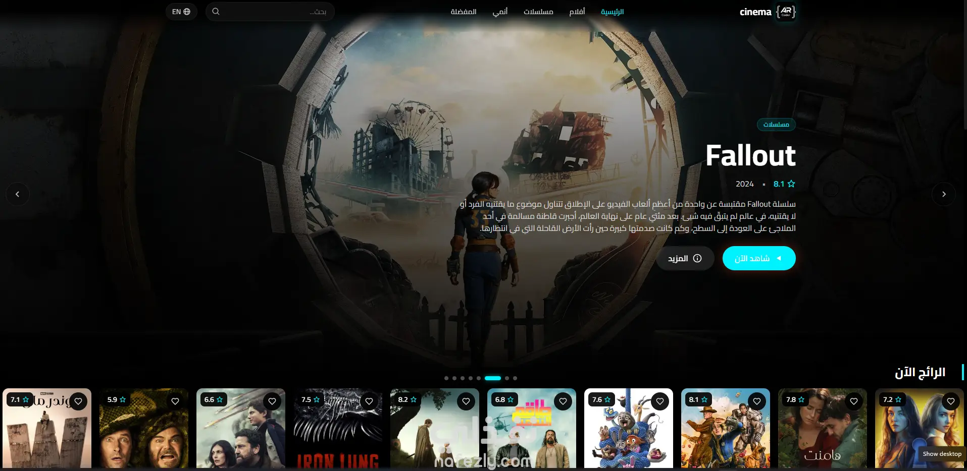موقع لعرض جميع الافلام والمسلسلات العربية والاجنبية وقسم خاص بالانمي يتميز الموقع بتصميم جذاب ومكانية تغير اللغة من العربية للانجليزية