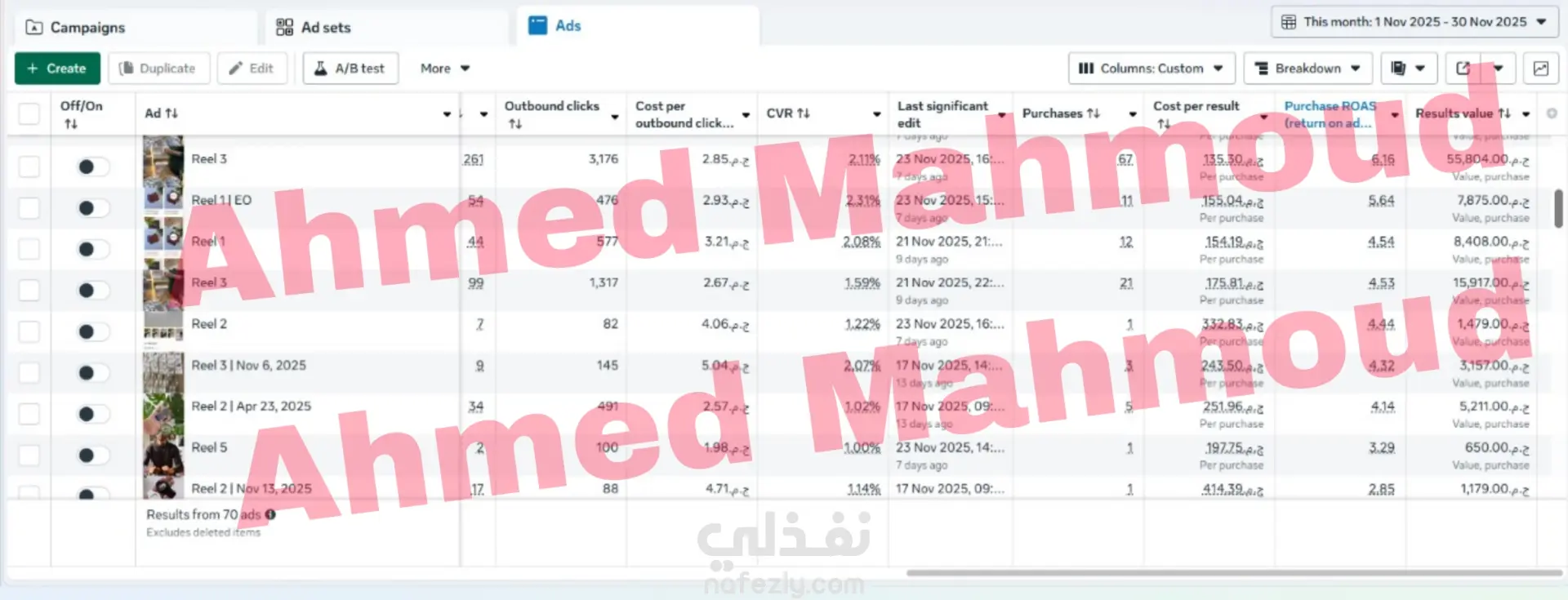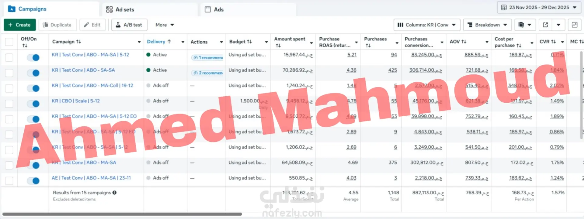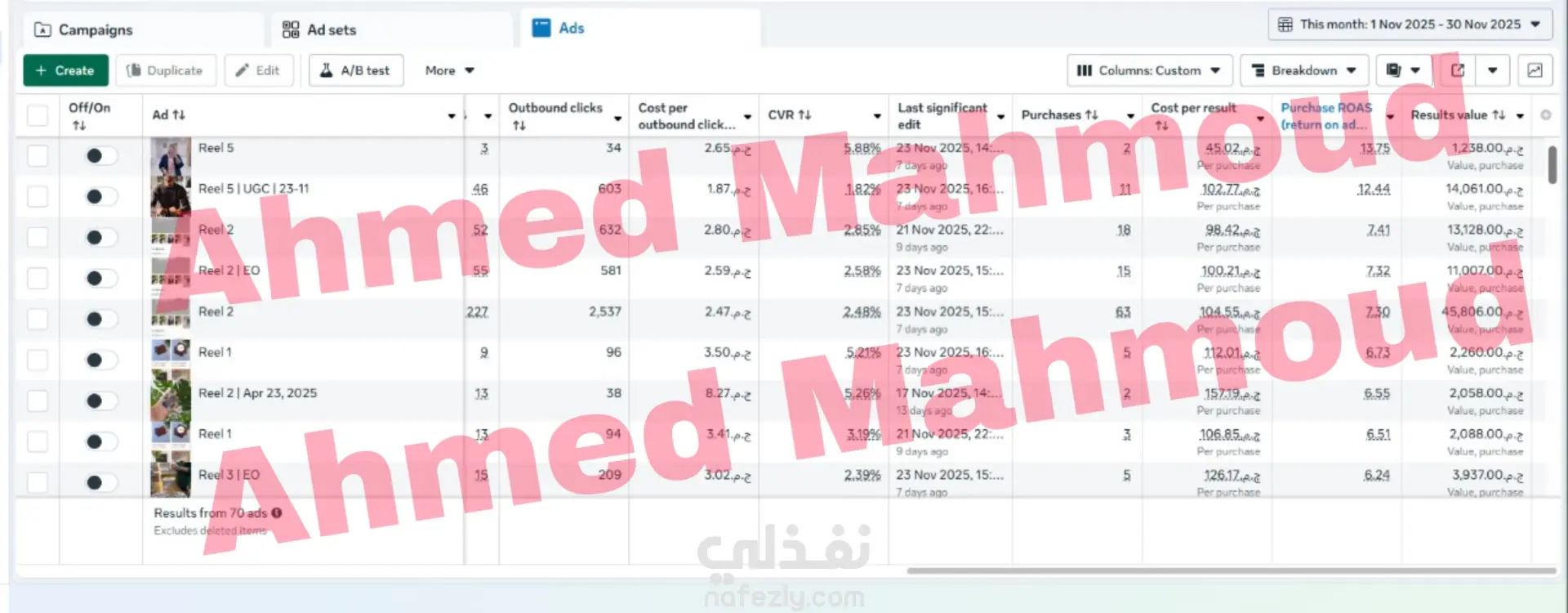 اشتغلت مؤخرًا على براند ساعات، وقدرت أحقق ROAS بين 4 و 9 من خلال إدارة كاملة للمنظومة الإعلانية من أول بناء الموقع لحد البيع.