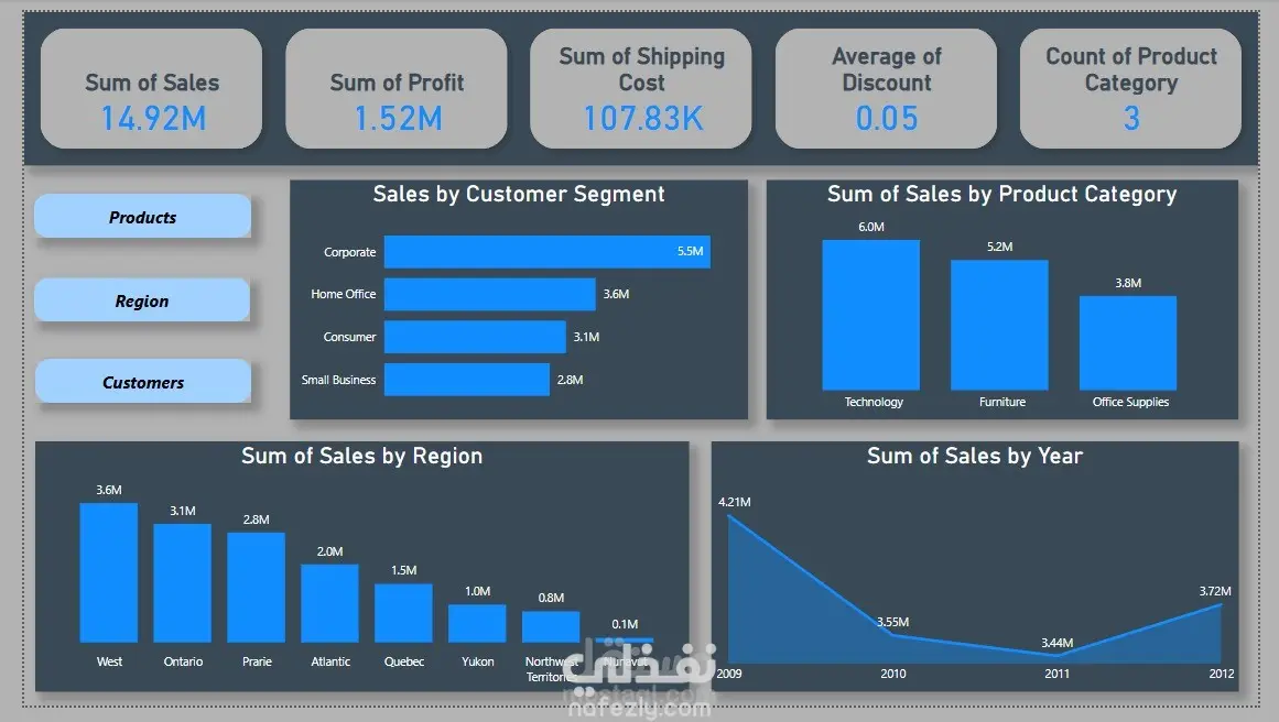 تم إنشاء لوحة تحكم تفاعلية باستخدام Power BI لتحليل بيانات المبيعات بناءً على عدة عوامل مثل الفئات المنتجات، المناطق الجغرافية، وأنواع العملاء. توفر هذه اللوحة نظرة شاملة حول الأداء التجاري من خلال مؤشرات الأداء الرئيسية (KPIs) والرسوم البيانية التفاعلية، مما يساعد في اتخاذ قرارات مستنيرة بناءً على البيانات.