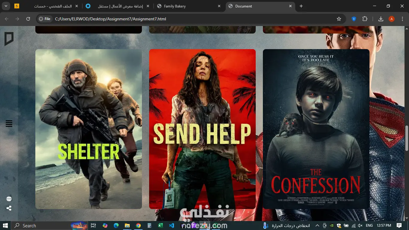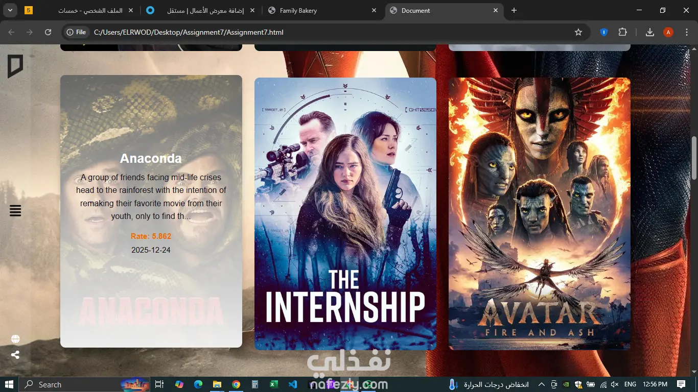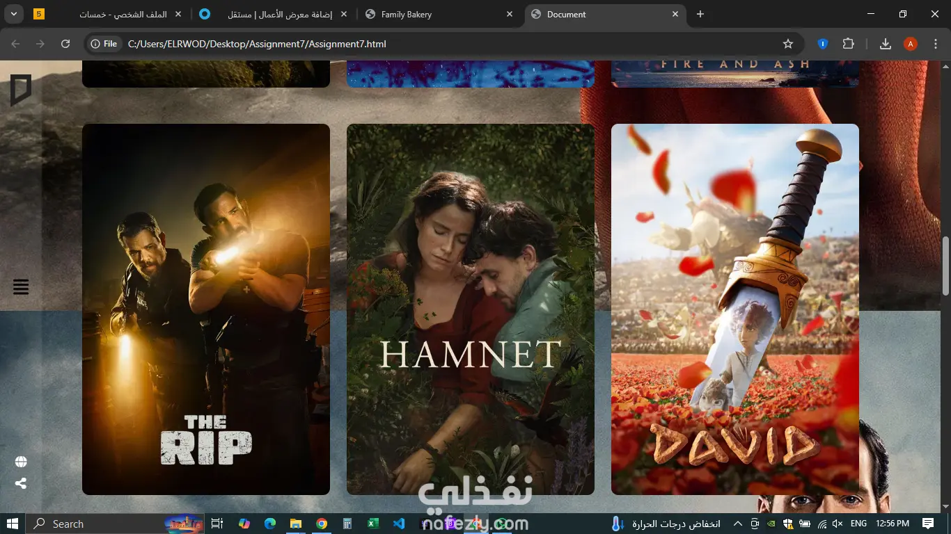 Movies Website project that displays a variety of films with details such as title, genre, and rating. The website features a clean, responsive design, providing users with a smooth browsing experience.