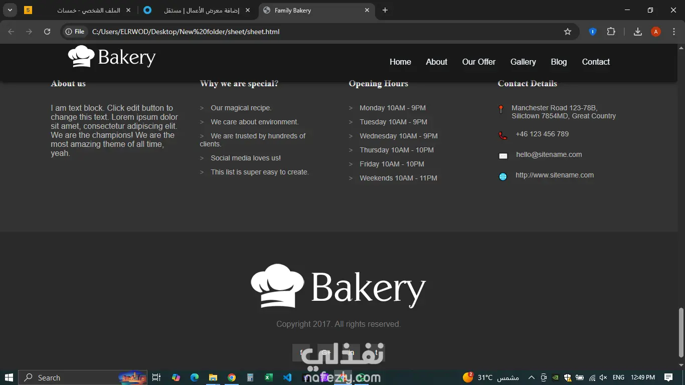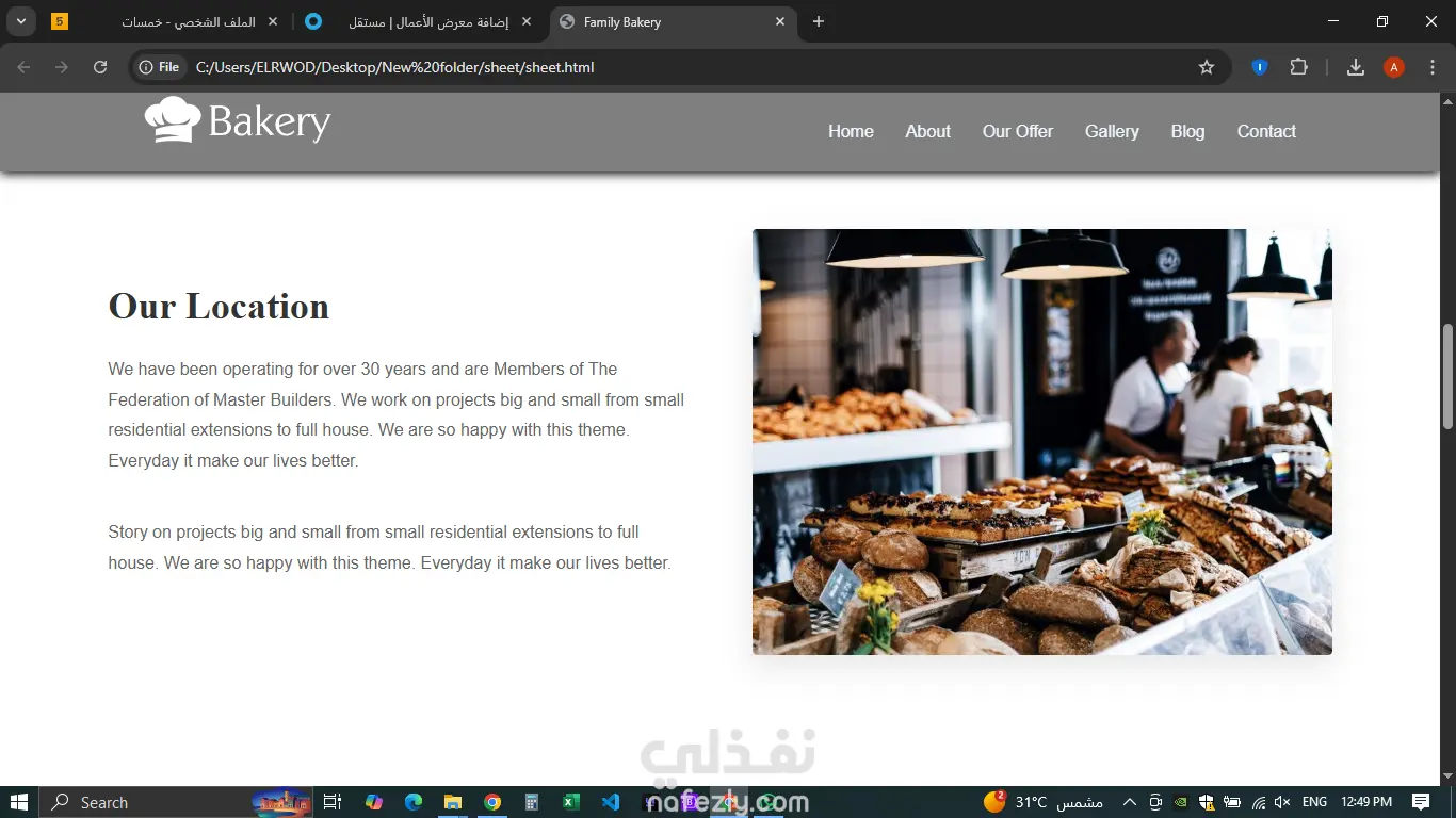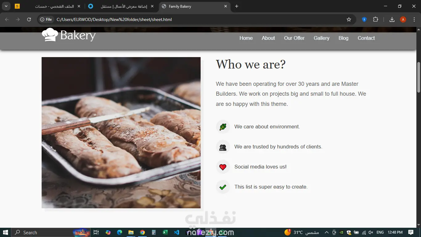 A Bakery Website project that showcases bakery products such as breads and pastries through a clean and responsive design. The website focuses on user-friendly navigation and an attractive layout to provide a smooth browsing experience.