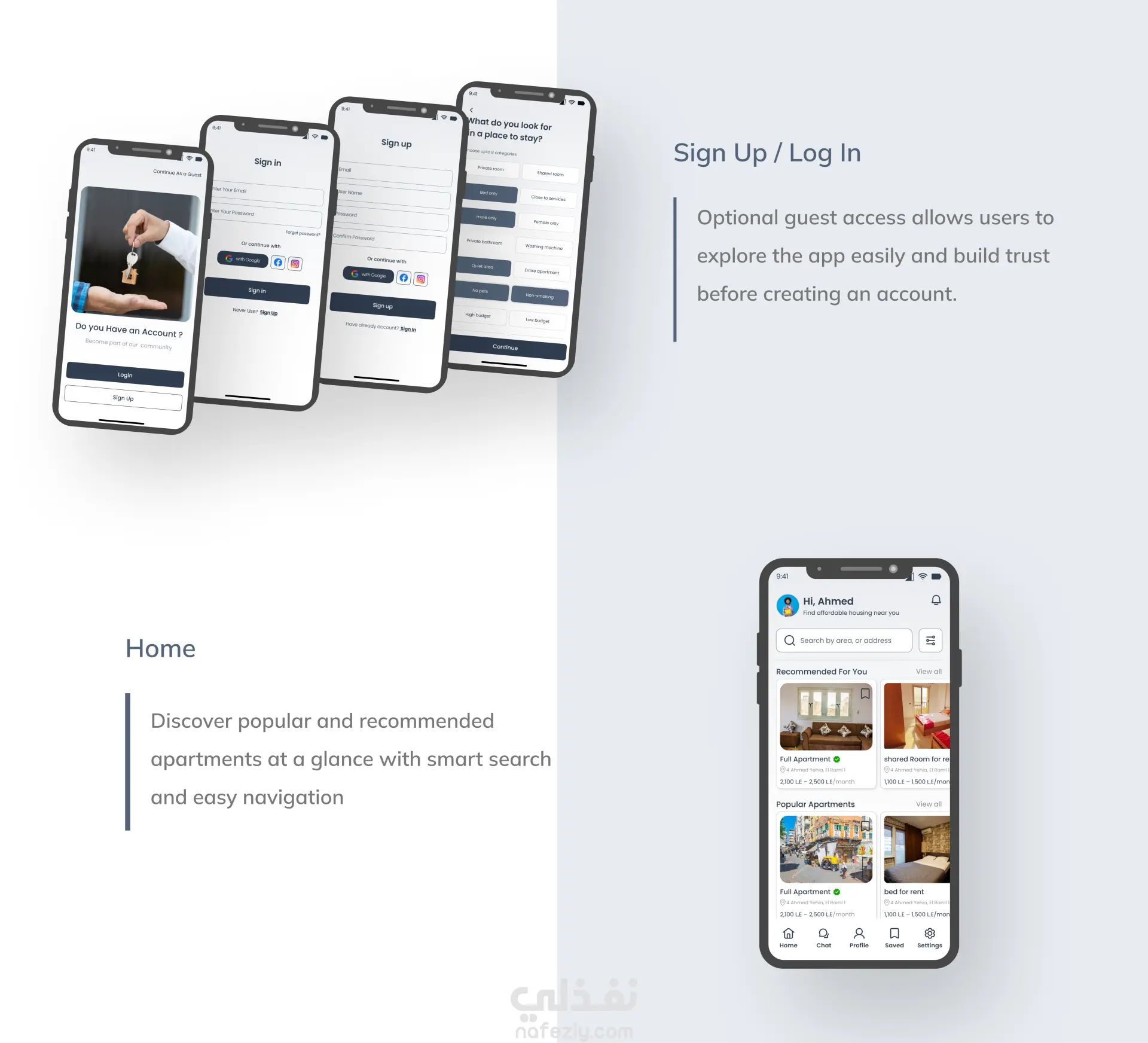 سكني Sakkeny (تصميم تطبيق لحجز شقق للطلبة المغتربين)