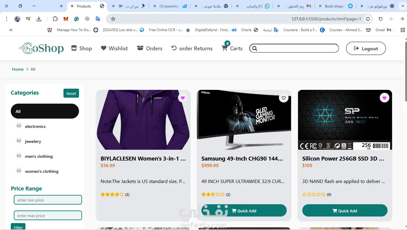 نظام متجر إلكتروني متكامل مع بوابة دفع ولوحة تحكم