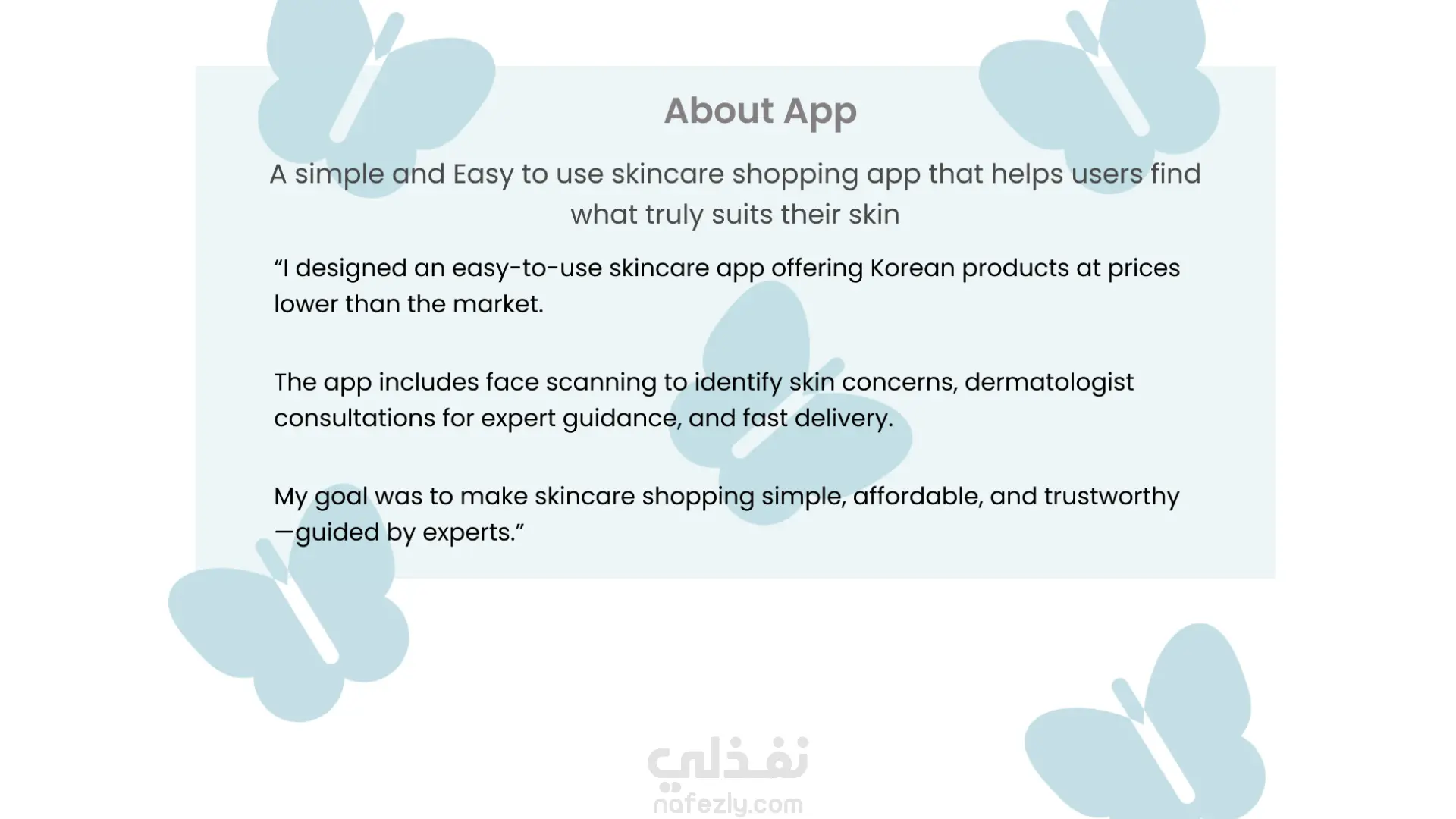 صممت تطبيق سهل الاستخدام يوفر منتجات كورية تهتم بجميع أنواع البشرة وحل مشاكلها . يتضمن ترشيحات لمنتجات تناسب نوع بشرتك . بألوان عصرية ومريحة للعين .