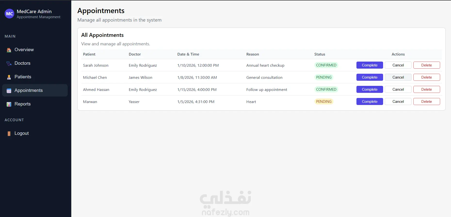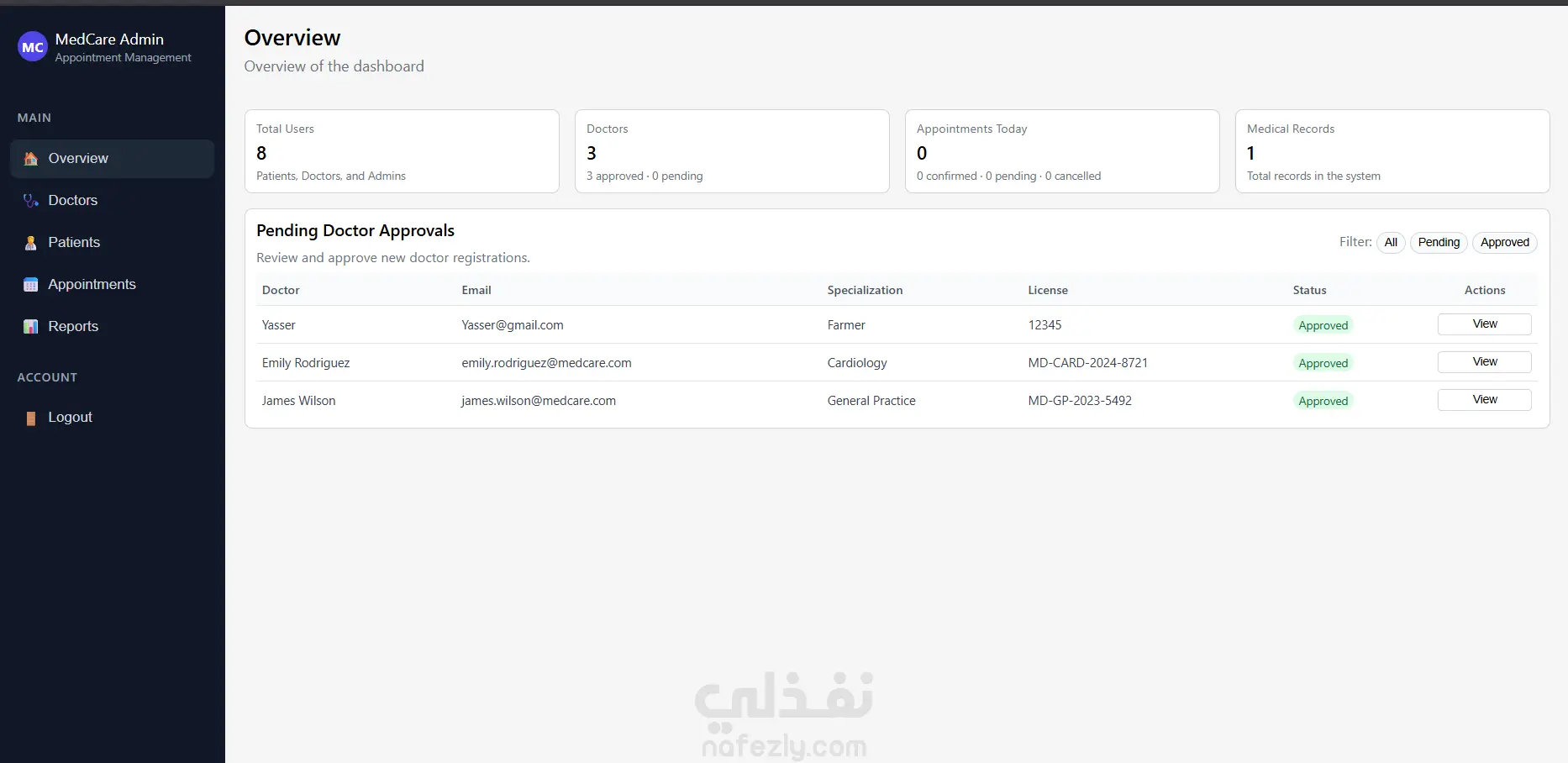 منصة إدارة حجز مواعيد الأطباء هي نظام إلكتروني يهدف إلى تنظيم وتسهيل عملية حجز ومتابعة المواعيد بين المرضى والدكاترة. تتيح المنصة للمرضى البحث عن الأطباء حسب التخصص أو الموقع، والاطلاع على بيانات كل طبيب، ثم اختيار الموعد المناسب وحجزه بسهولة. كما تمكّن الأطباء من إدارة جداولهم، متابعة الحجوزات، والتواصل مع المرضى، مع إرسال إشعارات تلقائية للتأكيد والتذكير بالمواعيد، مما يساهم في تقليل الزحام وتحسين جودة الخدمة الطبية.