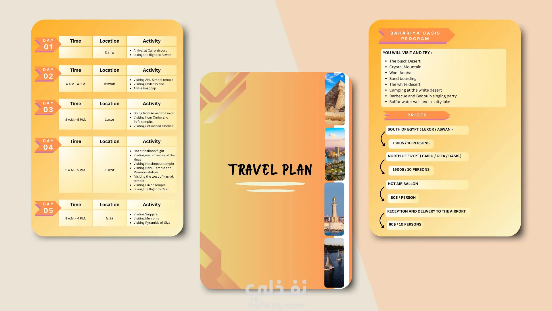 تصميم دليل وبرنامج رحلة في مصر رقمي منظّم وسهل الاستخدام