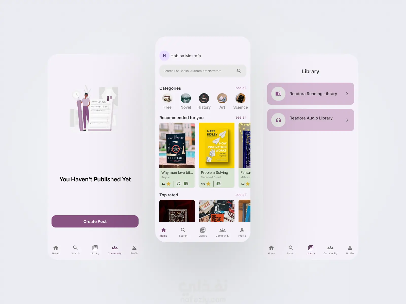 تصميم تجربة وواجهات تطبيق (READORA) للقراءة الرقمية والكتب الصوتية