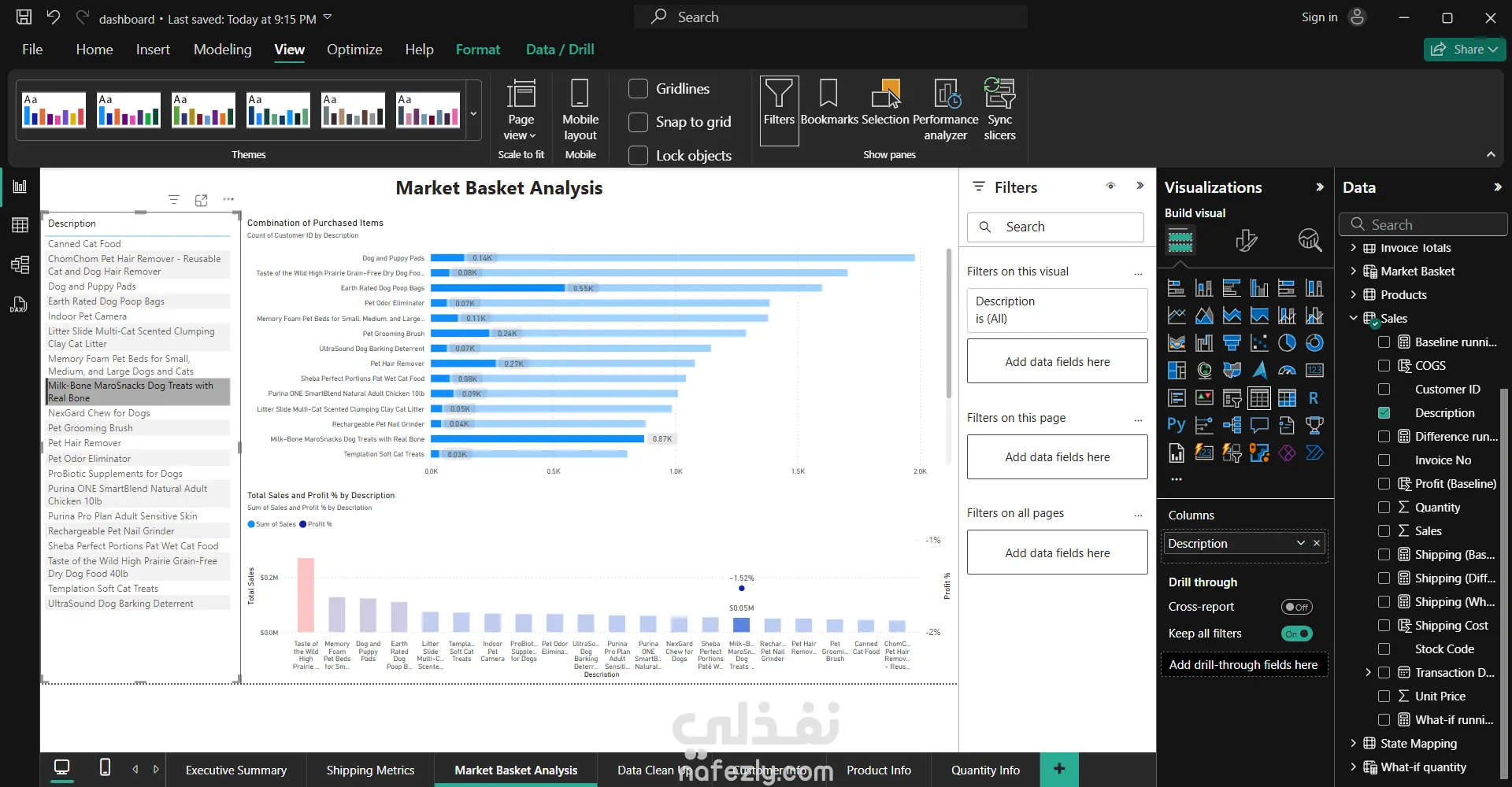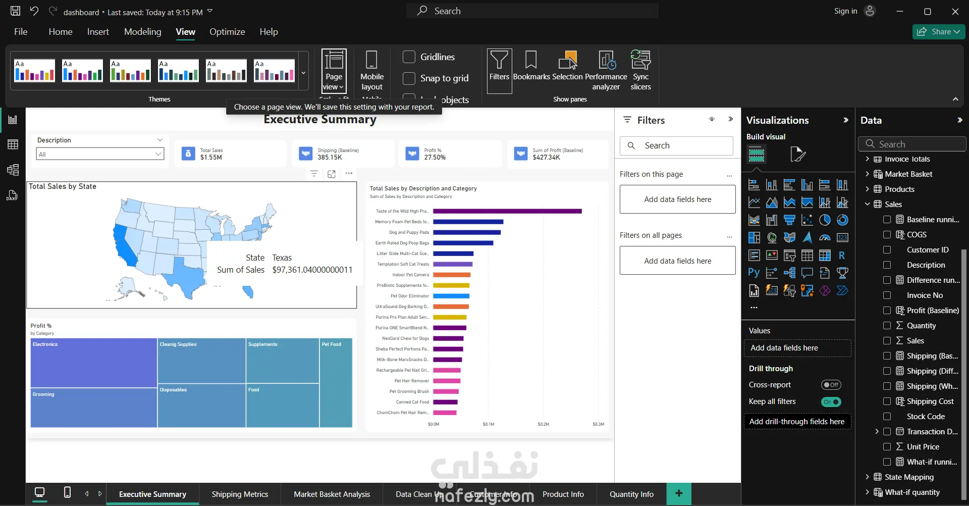 هذا المشروع عبارة عن لوحة تحكم تحليلية متكاملة باستخدام Power BI، تم تصميمها لتقديم رؤى عملية وقابلة للتنفيذ تساعد أصحاب المتاجر الإلكترونية على فهم أداء أعمالهم واتخاذ قرارات مبنية على البيانات. تعتمد اللوحة على مجموعة من التصورات التفاعلية لتحليل المبيعات، تكاليف الشحن، وسلوك العملاء الشرائي. تم تقسيم التحليل إلى عدة أقسام رئيسية، بحيث يغطي كل قسم جانبًا مهمًا من العمل التجاري: 1️⃣ الملخص التنفيذي (Executive Summary) نظرة شاملة وسريعة على أداء النشاط التجاري. أهم المؤشرات: إجمالي المبيعات إجمالي الأرباح تكاليف الشحن مؤشرات الأداء الرئيسية (KPIs) أهم الرسومات: المبيعات حسب الولاية / المنطقة (خريطة تفاعلية) الأرباح حسب فئة المنتج أفضل المنتجات مبيعًا 2️⃣ تحليل الشحن (Shipping Metrics) تحليل تفصيلي لأداء عمليات الشحن والخدمات اللوجستية. التركيز على: طرق الشحن المختلفة زمن التسليم توزيع تكاليف الشحن القيمة المضافة: تحديد نقاط الاختناق في الشحن تحسين استراتيجيات التوصيل تقليل التكاليف التشغيلية 3️⃣ تحليل سلة المشتريات (Market Basket Analysis) فهم أعمق لسلوك العملاء الشرائي. التركيز على: المنتجات التي يتم شراؤها معًا بشكل متكرر الفوائد: دعم استراتيجيات البيع المتقاطع (Cross-Selling) تحسين العروض والباقات الترويجية زيادة متوسط قيمة الطلب (AOV)