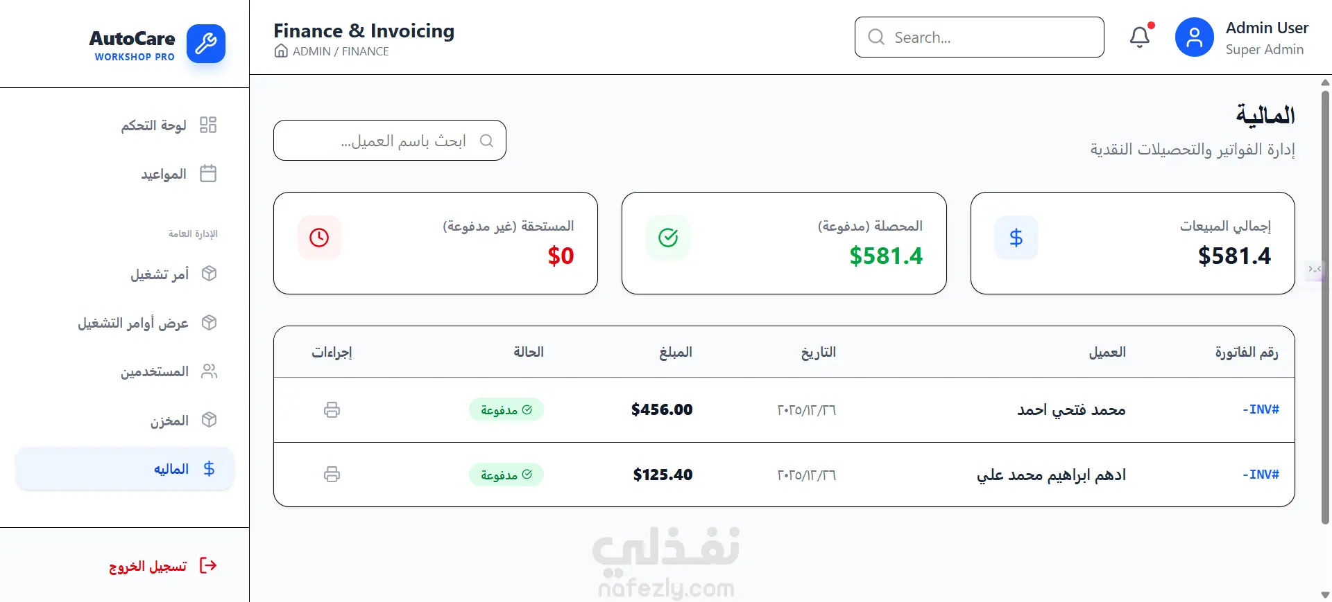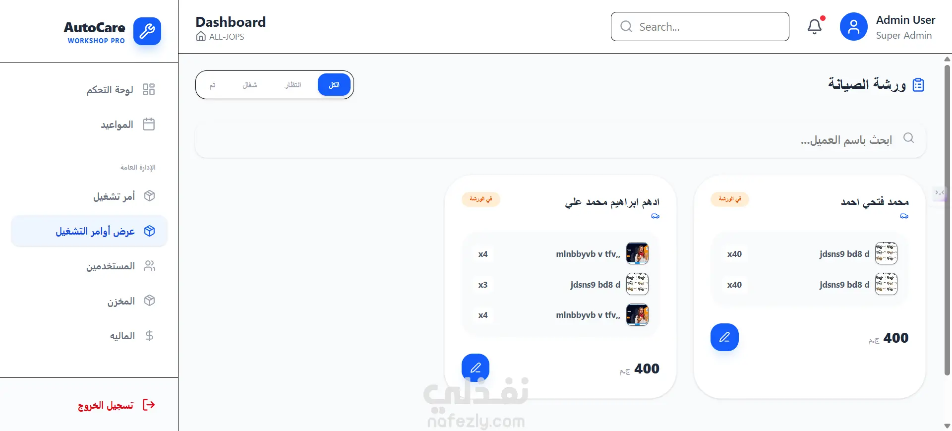 هل تعبت من الفواتير الورقية وضياع سجلات الصيانة؟ يقدم لك هذا النظام تجربة رقمية كاملة لإدارة ورشتك من أي جهاز (موبايل أو كمبيوتر) وبكل سهولة.