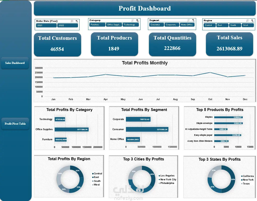 ? مشروع تحليل البيانات | لوحة معلومات المبيعات والأرباح (إكسل) يسعدني أن أشارككم مشروعي الثاني في تحليل البيانات، حيث قمتُ بإنشاء لوحتي معلومات تفاعليتين ومترابطتين بالكامل لتحليل أداء المبيعات والأرباح باستخدام برنامج مايكروسوفت إكسل. ? هدف المشروع: تحليل اتجاهات المبيعات والربحية لتحديد المنتجات والمناطق وشرائح العملاء الأفضل أداءً، ودعم اتخاذ القرارات بناءً على البيانات. ? الأدوات المستخدمة: • إكسل (تنظيف البيانات وإعدادها) • الجداول المحورية والمخططات المحورية • أدوات التصفية والجداول الزمنية • تصميم لوحة معلومات إكسل ? أهم النتائج: ✔ حققت اللوازم المكتبية أعلى حجم مبيعات ✔ ساهمت شريحة المستهلكين بأكبر حصة من المبيعات والأرباح ✔ بلغت المبيعات والأرباح ذروتها خلال أشهر محددة، مما يُبرز الاتجاهات الموسمية ✔ حققت بعض المنتجات مبيعات عالية ولكن أرباحًا أقل، مما يُؤكد أهمية تحليل هامش الربح