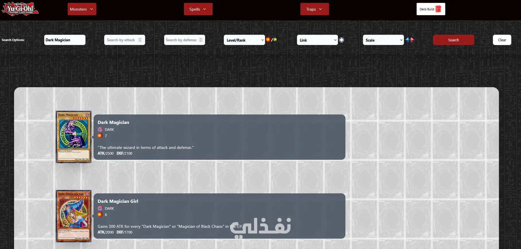 تم تطوير مشروع تفاعلي عبارة عن قاعدة بيانات لبطاقات Yu-Gi-Oh تهدف إلى عرض معلومات البطاقات بطريقة سهلة وسريعة للمستخدمين.