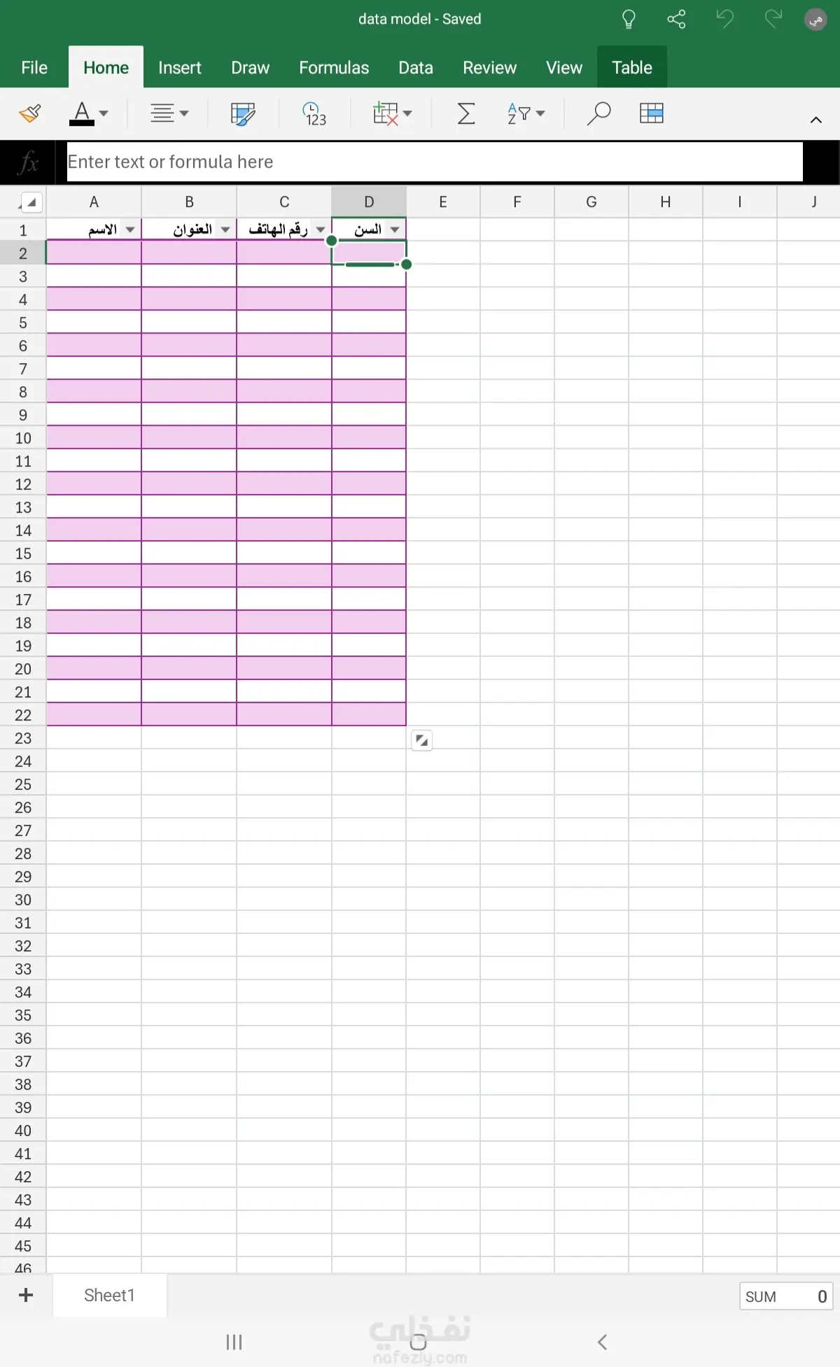 شيت اكسيل للبيانات الشخصية من اسم ، عنوان ، رقم هاتف ،سن