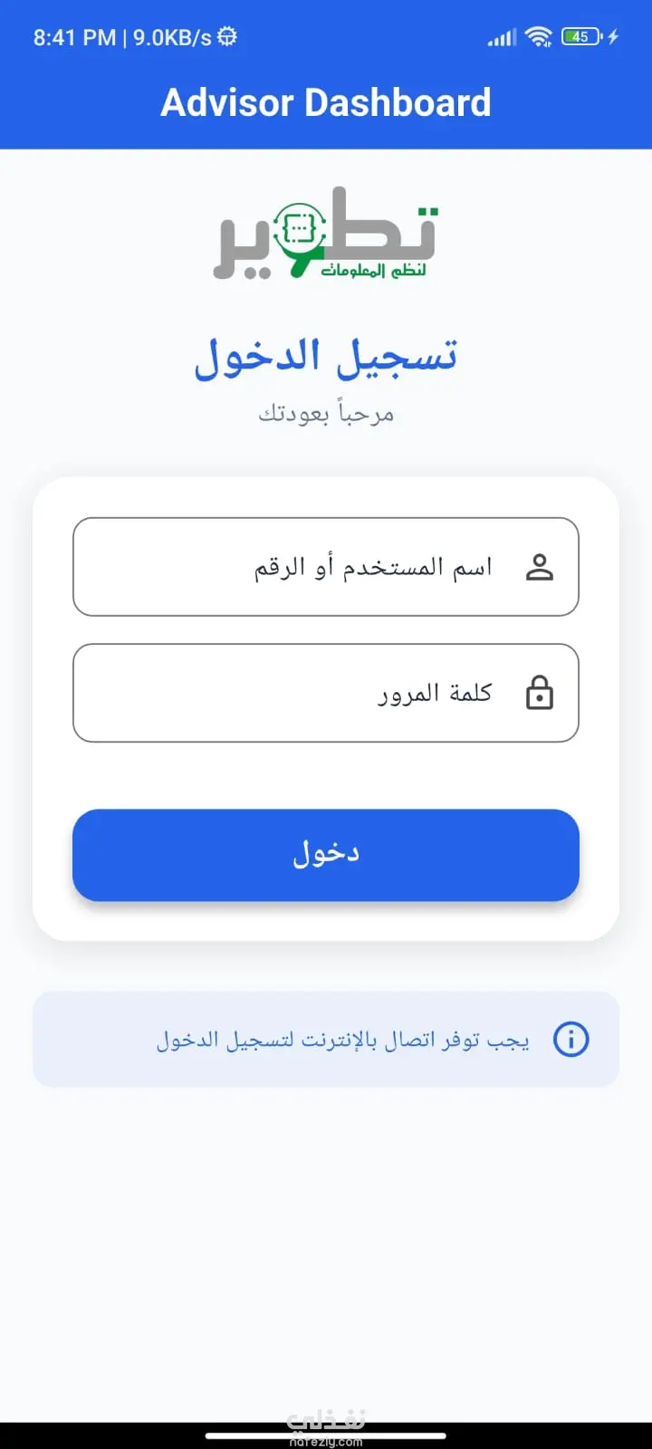 لوحة التحكم (Dashboard) في تطبيق Advisor