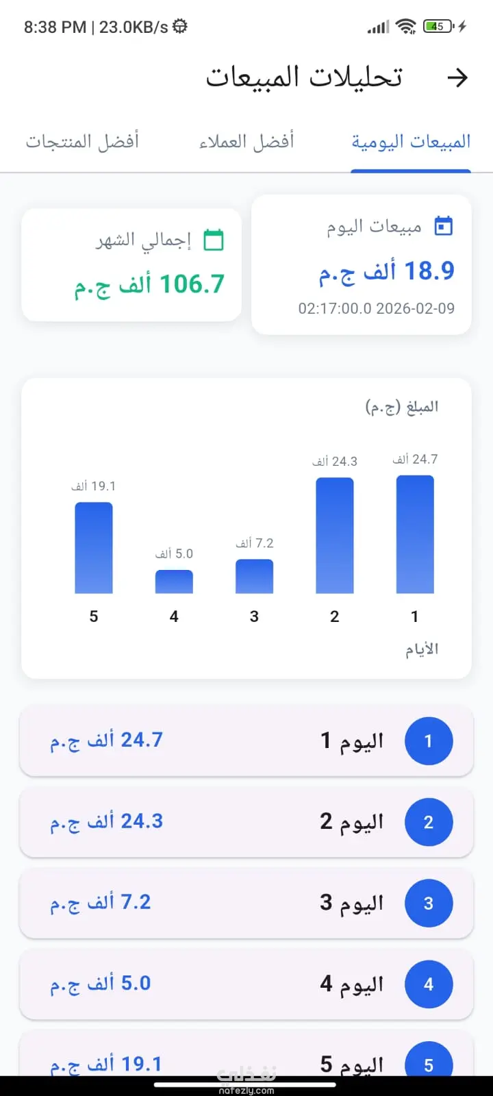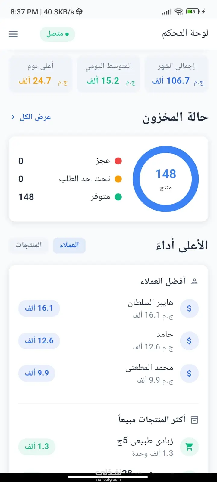 تعرض لوحة التحكم إحصائيات دقيقة ومحدّثة حول بيانات الموظفين والعملاء والمخزون، إلى جانب مبيعات اليوم ومؤشرات الأداء الرئيسية، مما يساعد الإدارة على اتخاذ قرارات سريعة ومبنية على بيانات واضحة.
