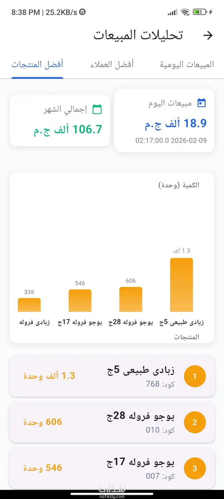 كما توفّر لوحة التحكم تحليلًا تفصيليًا للمبيعات الشهرية من خلال رسوم بيانية وتقارير تفاعلية توضح اتجاهات البيع ونسب النمو والأداء العام، بما يسهم في تقييم الخطط التسويقية وتحسين استراتيجيات المبيعات.