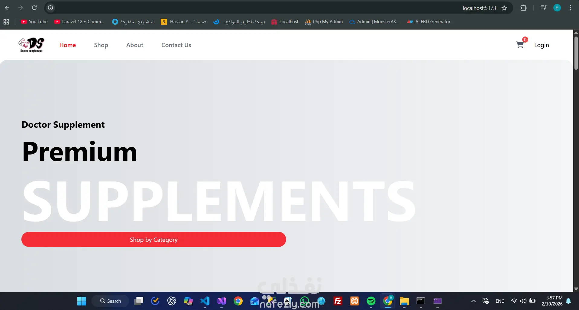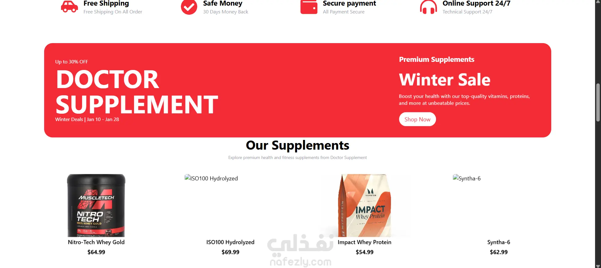 متجر الكتروني لبيع المكملات الغذائيه بتصميم جزاب ومتوافق مع كل الاجهزه ( موبايل-تابلت-لابتوب-كومبيوتر) حيث يمكن التصفح والبحث عن المنتجات عن طريق الفئه او اسم المنتج وايضا يمكنك اضافتها ف قائمتك المفضله لشراءها لاحقا