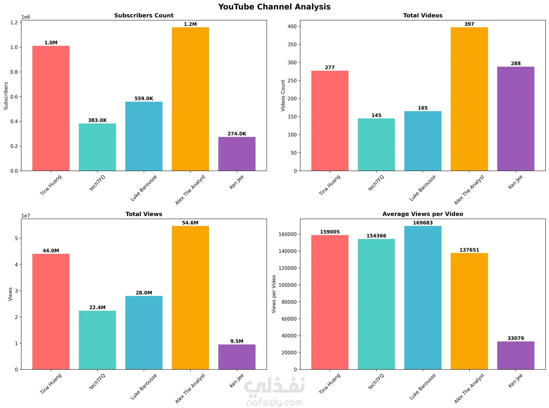 📊 YouTube Channel Analytics Project – تحليل قنوات يوتيوب باستخدام API