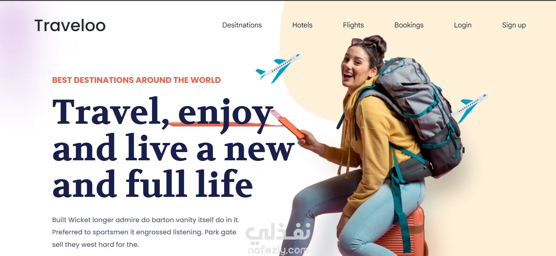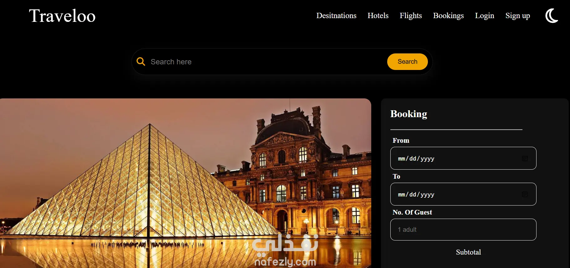 Traveloo هو موقع حجز رحلات وسفر معمول لتقديم تجربة استخدام سهلة وعصرية. الموقع بيدعم Dark Mode علشان راحة العين، وبيوفّر نظام حجز بسيط يساعد المستخدم يختار وجهته ويحجز بسهولة. التصميم بيركز على الوضوح، الريسبونسف، وتنقل سلس بين الأقسام لتجربة سفر مريحة من أول زيارة.
