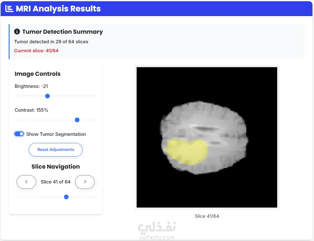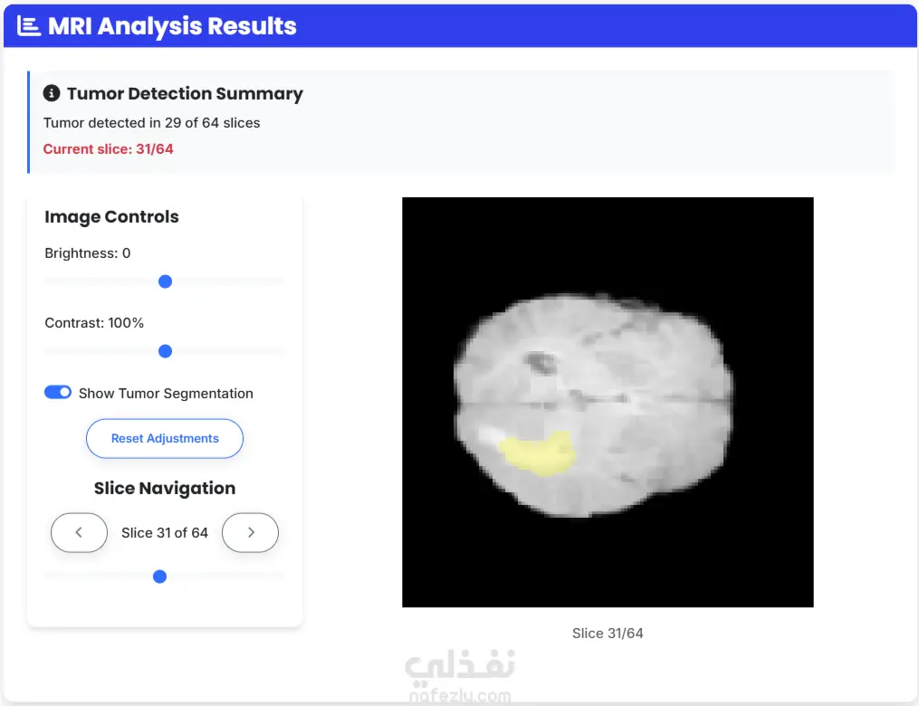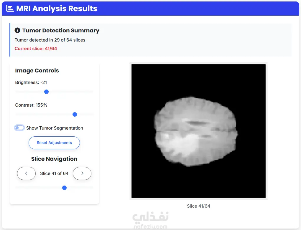 قمت بتطوير نظام ذكاء اصطناعي متكامل لتحليل صور الرنين المغناطيسي ثلاثية الأبعاد (3D MRI) بهدف تحديد موقع أورام الدماغ بدقة عالية باستخدام Semantic Segmentation. النموذج مبني باستخدام شبكة U-Net ثلاثية الأبعاد مع تحسينات على البيانات الطبية مثل normalization, cropping, and resizing. يدعم النظام رفع ملفات .nii.gz الطبية، ويقوم تلقائيًا بمعالجة الصورة، وتحديد مناطق الورم بدقة باستخدام sliding window inference. النتائج يتم عرضها على شكل صور تفاعلية قبل وبعد التنبؤ، مع تلوين منطقة الورم بشكل واضح ليسهّل على المستخدمين أو الأطباء رؤية الفروقات. تم استخدام مكتبات مثل PyTorch وMONAI لمعالجة الصور الطبية بكفاءة عالية.