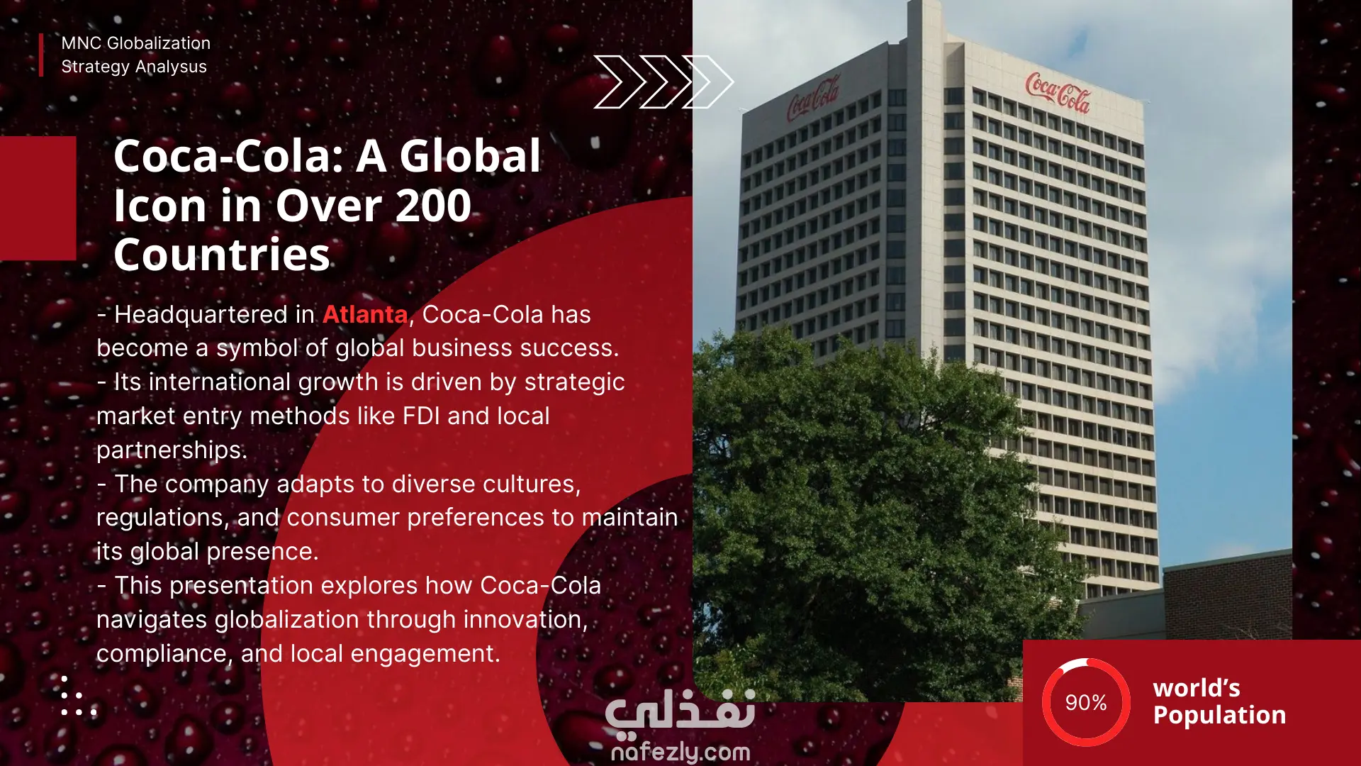 عرض تقديمي اكاديمي جذاب بعنوان Globalization& Coca-Cola تم استلهام التصميم من قالب باستخدام Canva و تم تعديله ليناسب محتوى الموضوع