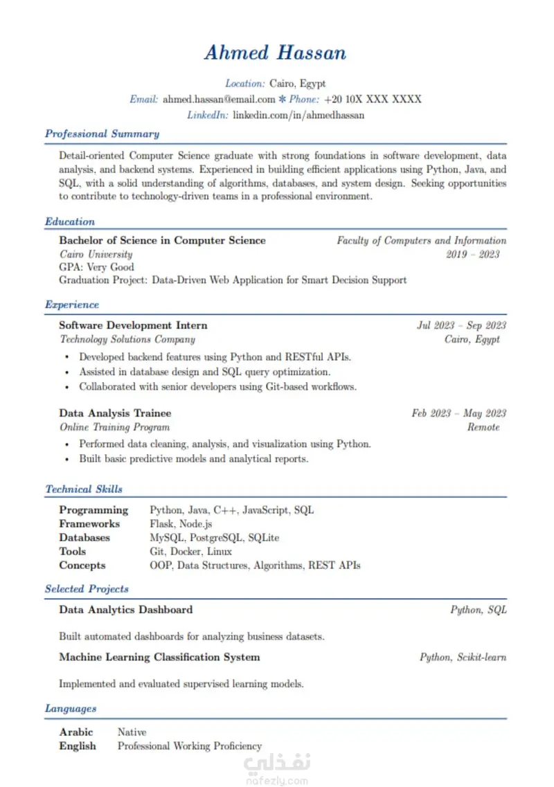 سعر الخدمة الأساسي يشمل كتابة وتطوير سيرة ذاتية احترافية حتى صفحتين.