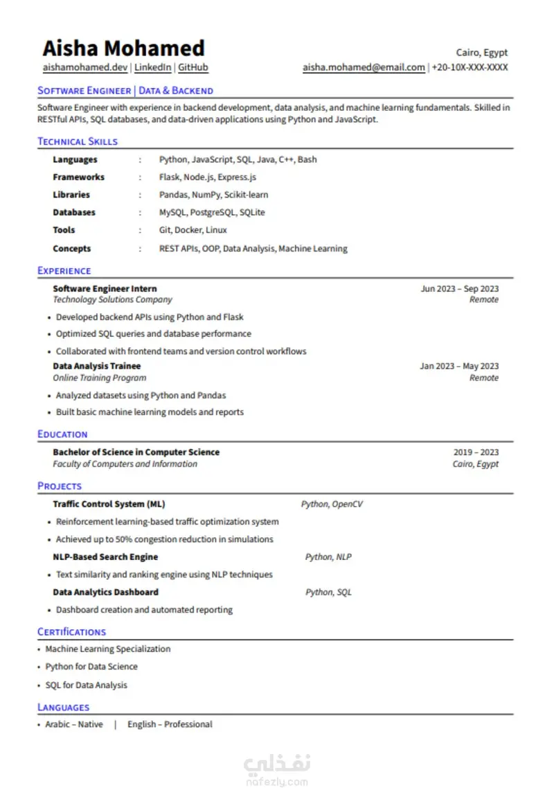 أقدّم لك خدمة كتابة وتطوير سيرة ذاتية احترافية باللغة العربية أو الإنجليزية، متوافقة 100% مع أنظمة ATS، ومهيأة لتجاوز الفلترة الآلية والوصول إلى مسؤولي التوظيف.