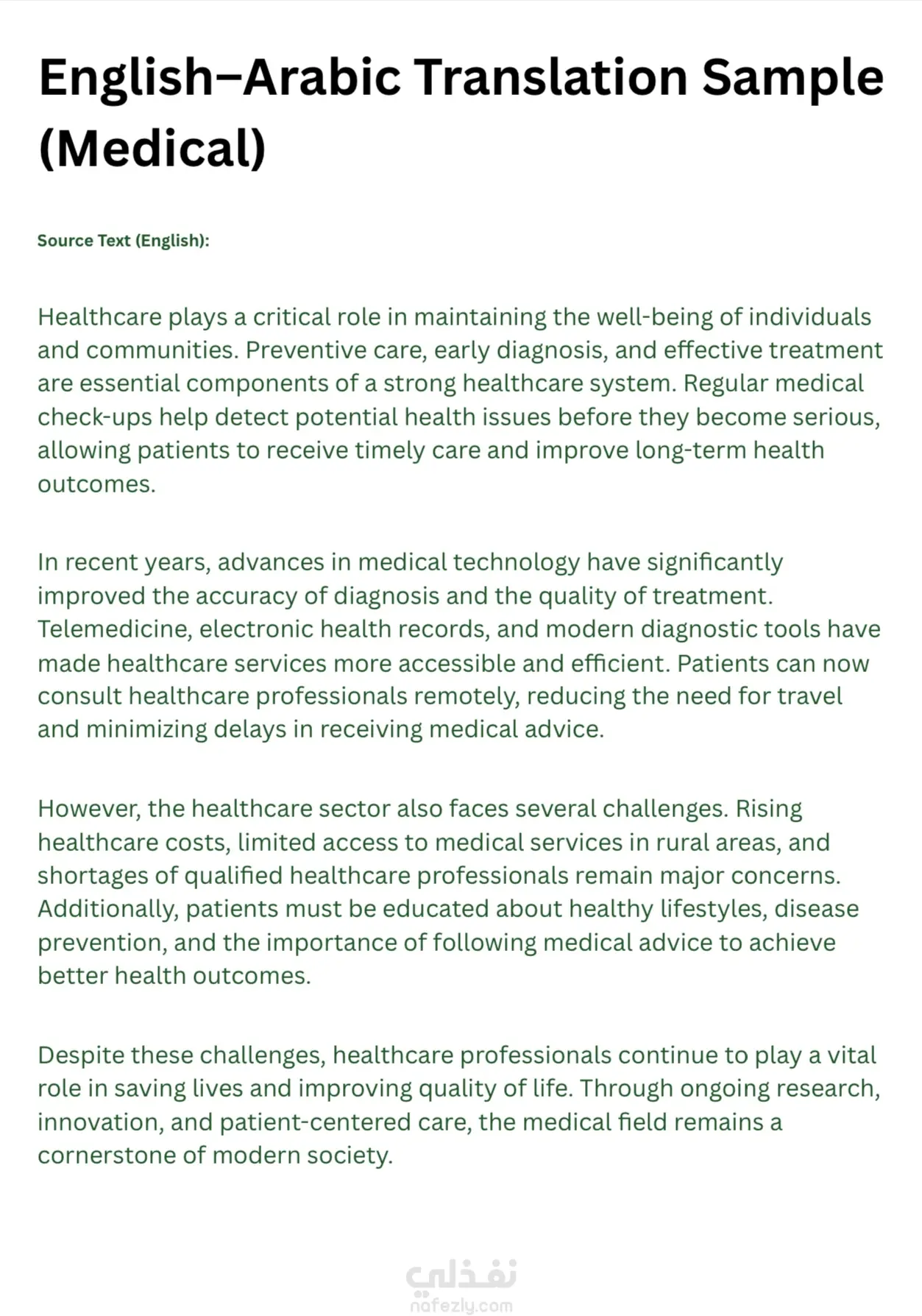 خدمة ترجمة المحتوى الطبي (من الإنجليزية إلى العربية)