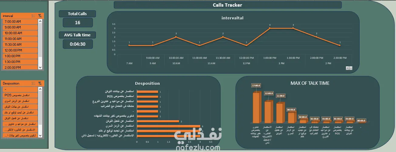 Analyzed call center data to track call volume, average talk time, and performance across different time intervals using Excel.