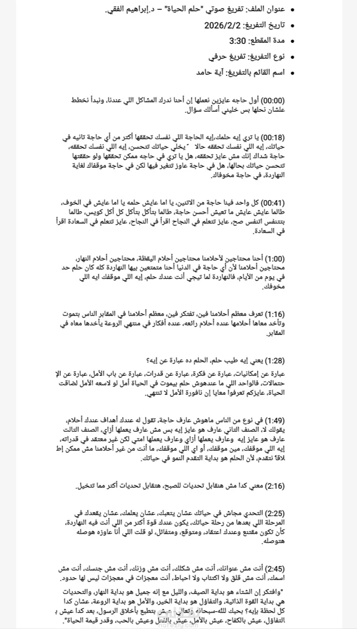 تفريغ فديو لنص د ابراهيم الفقي Microsoft word