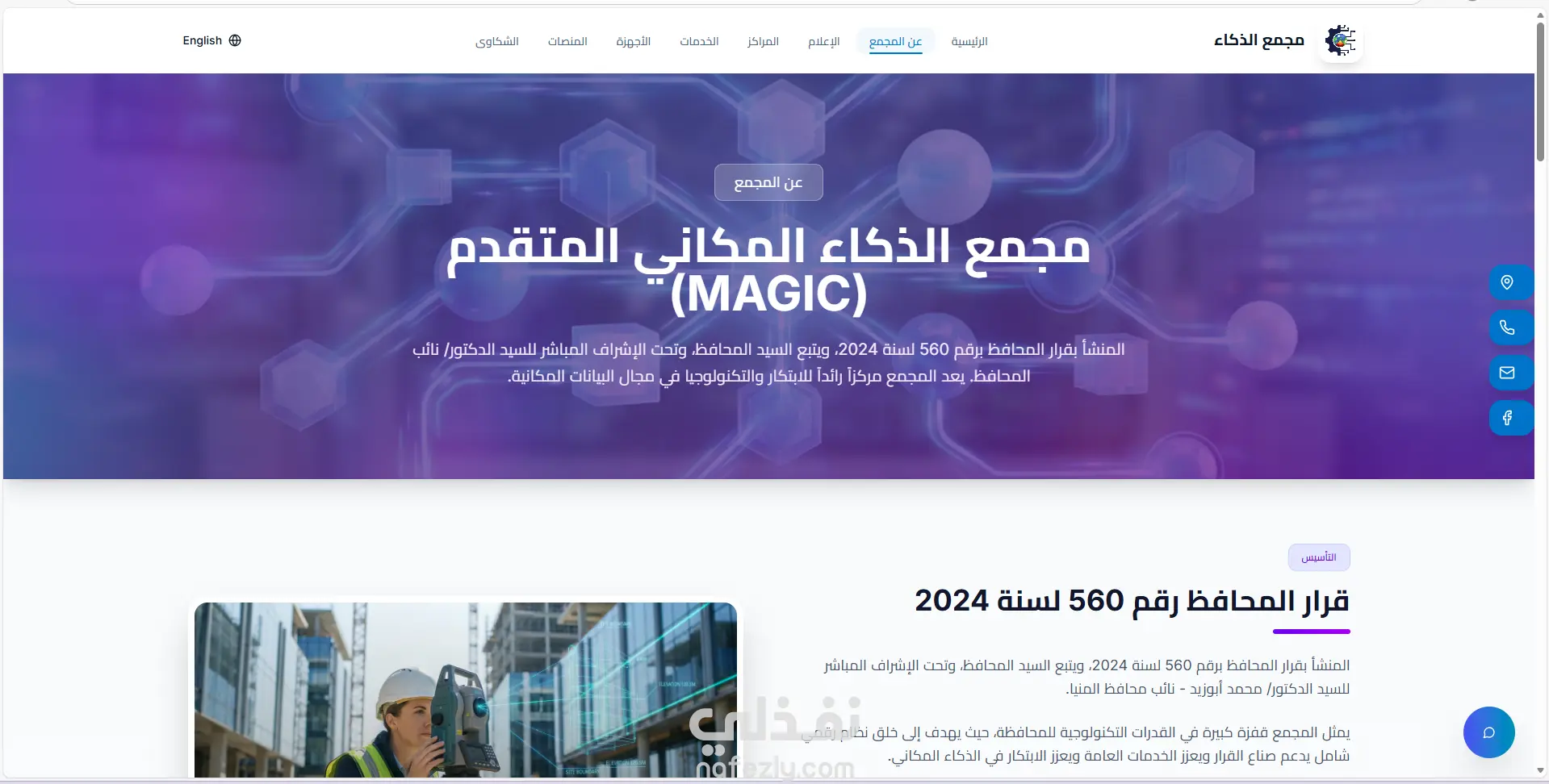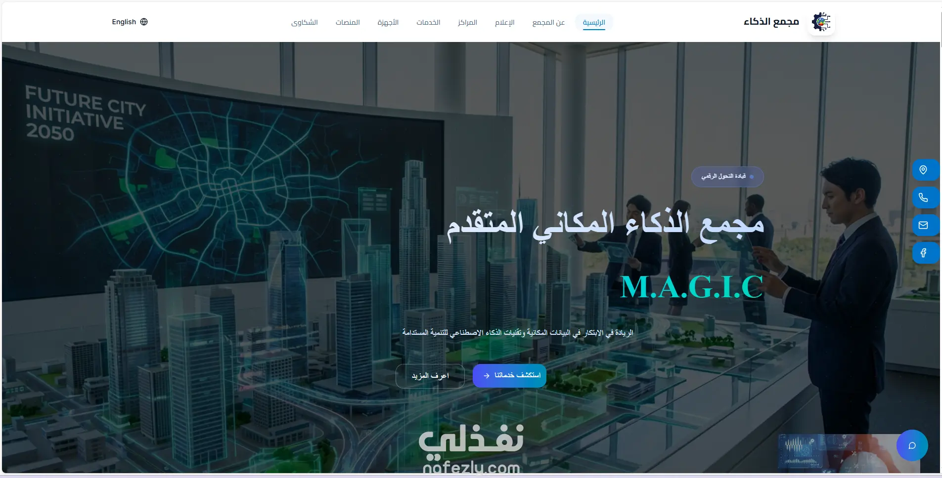 قمت بتطوير الموقع الإلكتروني لمجمع الذكاء المكاني (M.A.G.I.C) حيث أعمل ضمن فريق التحول الرقمي. تم تنفيذ المشروع باستخدام إطار Angular لبناء واجهة حديثة وسريعة الاستجابة، مع التركيز على تحسين تجربة المستخدم ودعم اللغتين العربية والإنجليزية. شمل عملي في المشروع: تصميم وتطوير واجهات تفاعلية (UI/UX) متوافقة مع الهوية البصرية للمجمع. ربط الموقع بالخدمات والأنظمة الداخلية الخاصة بالمجمع. إنشاء صفحات ديناميكية لعرض المعلومات حول الخدمات، الأجهزة، المنصات، والمراكز. تطوير نظام تنقل سهل وسلس متناسب مع الأجهزة المختلفة (Responsive Design). تحسين الأداء والسرعة باستخدام أفضل ممارسات Angular. إضافة عناصر تفاعل مثل نماذج التواصل، خرائط الموقع، ونوافذ المعلومات. ساهم هذا المشروع في إبراز قدرات المجمع في الابتكار والذكاء المكاني، ورفع جودة حضوره الرقمي بما يتناسب مع توجهاته المستقبلية.