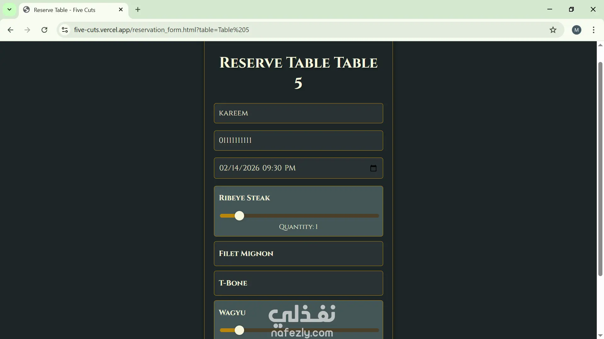 تجربة عشاء استثنائية مع Five Cuts: تصميم وبرمجة منصة حجوزات ذكية وتفاعلية