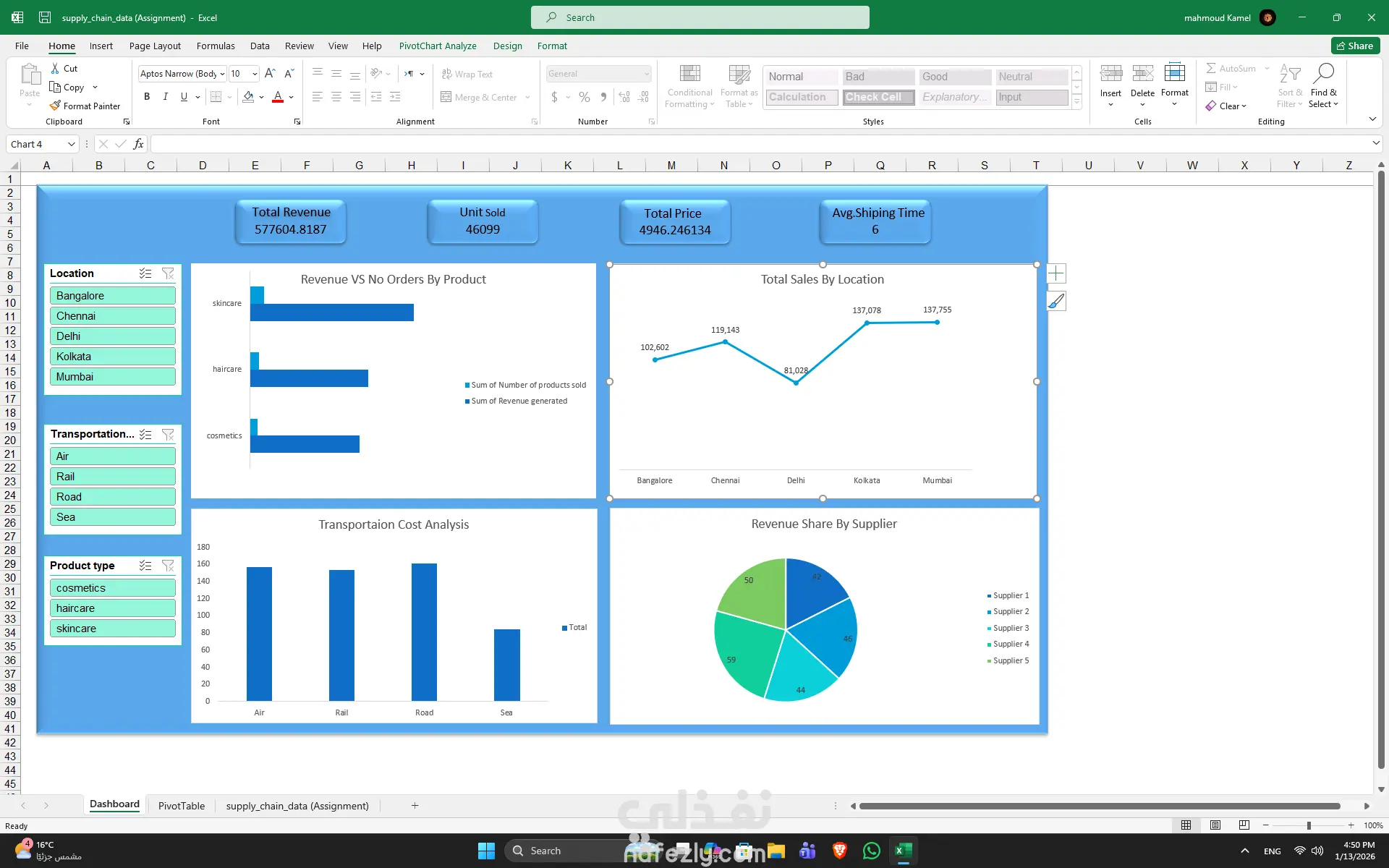 تصميم داشبورد احترافي وتحليل بيانات باستخدام Microsoft Excel