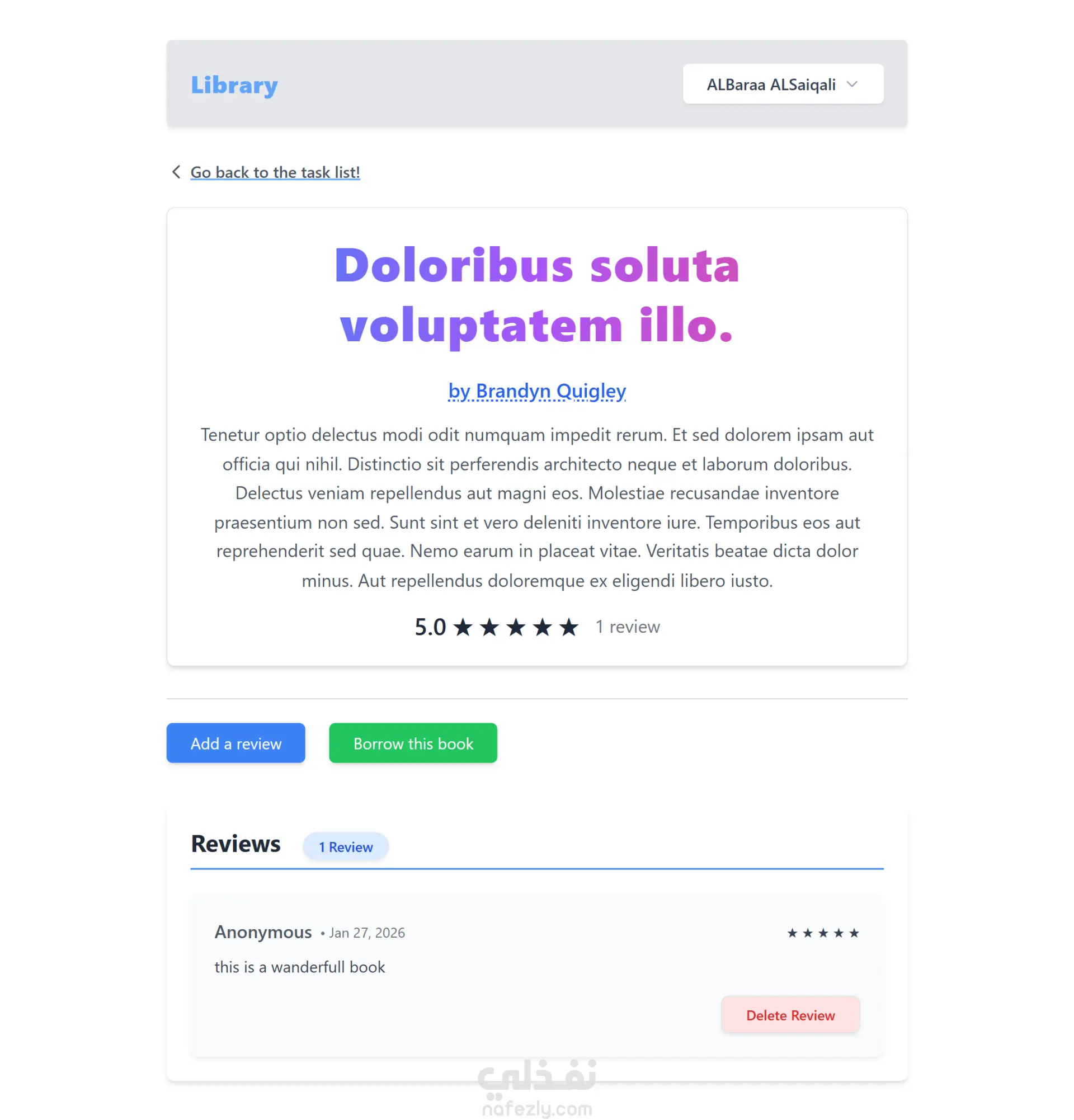 نظام مكتبة إلكتروني متكامل يهدف إلى تسهيل إدارة الكتب والمؤلفين والناشرين وعمليات الاستعارة بطريقة حديثة وسهلة الاستخدام. يتيح إضافة وتعديل وحذف الكتب مع عرض تفاصيلها الكاملة مثل العنوان، المؤلف، الناشر وعدد النسخ المتوفرة، بالإضافة إلى نظام بحث وتصفية متقدم. يتضمن نظام مراجعات وتقييم بالنجوم مع عرض متوسط التقييم وعدد المراجعات. يدعم تسجيل عمليات الاستعارة وتحديد تاريخ الإرجاع مع تحديث حالة الكتاب وإدارة عدد النسخ تلقائيًا. يوفر نظام صلاحيات متعددة (قارئ، أمين مكتبة، مدير) مع تقارير شاملة. تم تطويره باستخدام Laravel للبنية الخلفية، PostgreSQL لقاعدة البيانات، وTailwind CSS لواجهة متجاوبة وعصرية، مع إدارة الكود عبر GitHub.