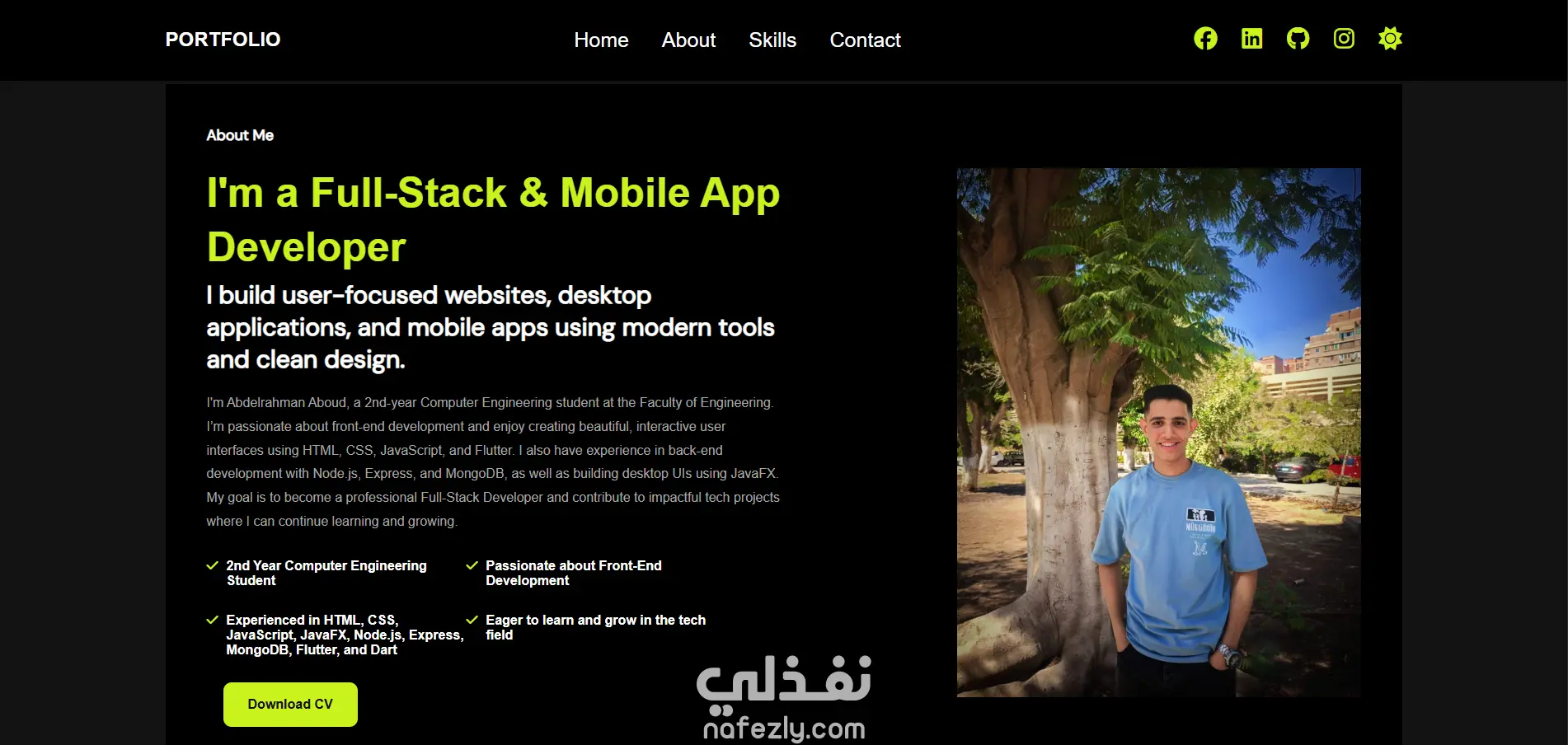 تصميم موقع شخصي (Portfolio) باستخدام HTML وCSS وJavaScript