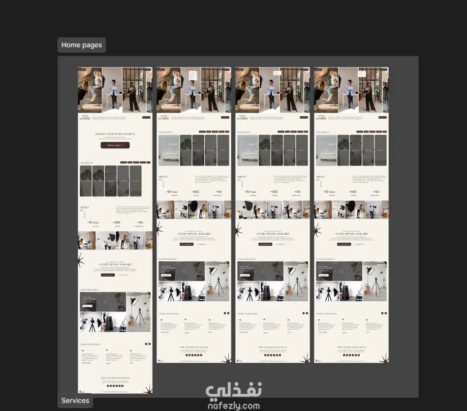قمت بتصميم وتطوير موقع Maison Lumière باستخدام منهجية حديثة في تصميم تجربة المستخدم (UX) وواجهة المستخدم (UI) على Figma، ثم تحويل التصميم إلى موقع إلكتروني متكامل ومتجاوب يعمل بسلاسة على جميع الأجهزة (موبايل – تابلت – سطح مكتب). تفاصيل العمل المنجز: تصميم كامل لواجهة الموقع على Figma بأسلوب حديث ونظيف. تصميم نسخة Mobile + Desktop مع مراعاة مبادئ الـ Responsive Design. تحويل التصميم إلى صفحات حقيقية باستخدام HTML – CSS – JavaScript. بناء واجهة سريعة وخفيفة مع تحسين الأداء والتوافق مع المتصفحات. ربط الموقع بالدومين والاستضافة باستخدام Hostinger. تنظيم الصفحات وتوزيع العناصر بما يخدم تجربة المستخدم وتسلسل المحتوى. اعتماد ألوان وهوية تتناسب مع طبيعة المشروع وخدماته.