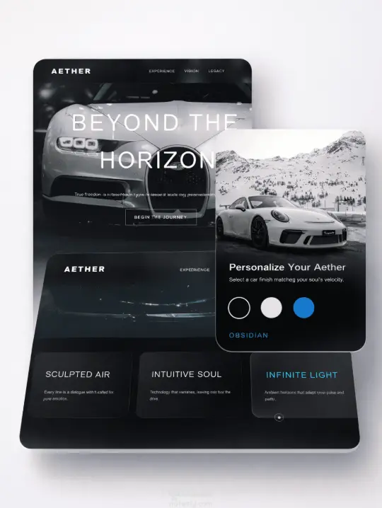 هل تبحث عن نقلة نوعية لعلامتك التجارية؟ هل تريد موقعاً لا يكتفي بعرض المنتجات، بل يحكي قصة تلمس مشاعر عملائك؟ أقدم لك خدمة تصميم وتطوير موقع AETHER، وهو مفهوم عصري لمواقع السيارات والبراندات الفاخرة، يعتمد على أرقى معايير التصميم العالمية (Cinematic Design) لضمان تجربة مستخدم لا تُنسى. تصميم بصري مذهل: استخدام تقنيات التصميم الزجاجي والـ Parallax لجعل الموقع يبدو كلوحة فنية متحركة. أداة تخصيص تفاعلية (Configurator): سكشن خاص يتيح لعملائك التفاعل مع المنتج وتغيير ألوانه أو مواصفاته فورياً، مما يزيد من وقت بقائهم في الموقع. أداء فائق السرعة: الكود مبني بـ Vanilla JavaScript بدون مكتبات خارجية ثقيلة. متوافق تماماً (Responsive): الموقع يعمل بكفاءة مثالية على الجوال، التابلت، وأجهزة الكمبيوتر. كود نظيف (Clean Code): سهل التعديل ومكتوب باحترافية.