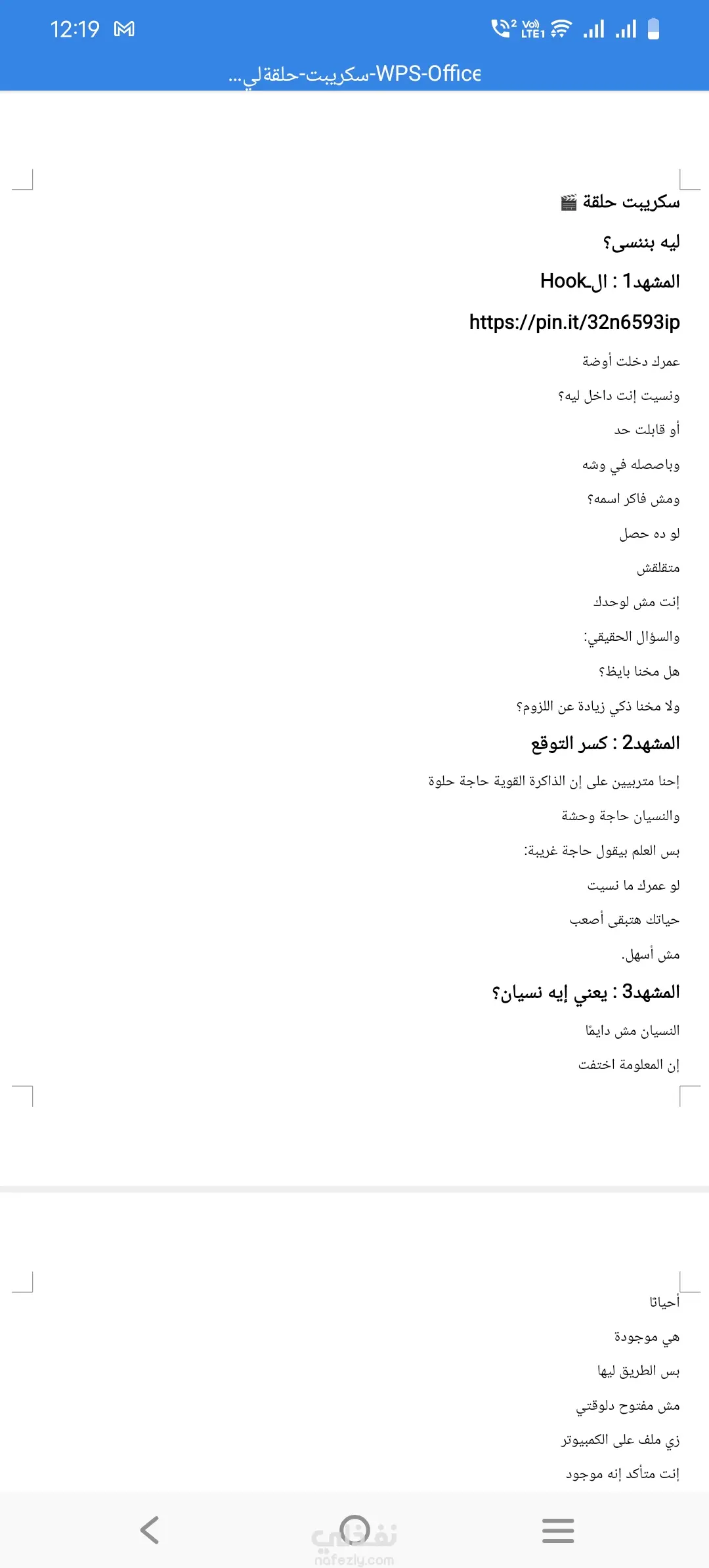 سكريبت حلقة ليه بننسى