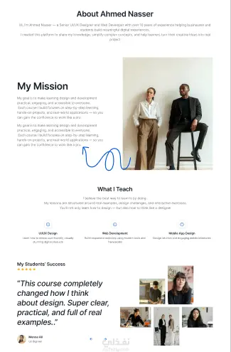تنفيذ منصة تعليمية كاملة تتيح: عرض الكورسات تسجيل المستخدمين تنظيم المحتوى التعليمي متابعة الطلاب تم تصميم المنصة لتكون: سهلة الاستخدام للطلاب واضحة في التحكم والإدارة مناسبة للتوسع مستقبلًا