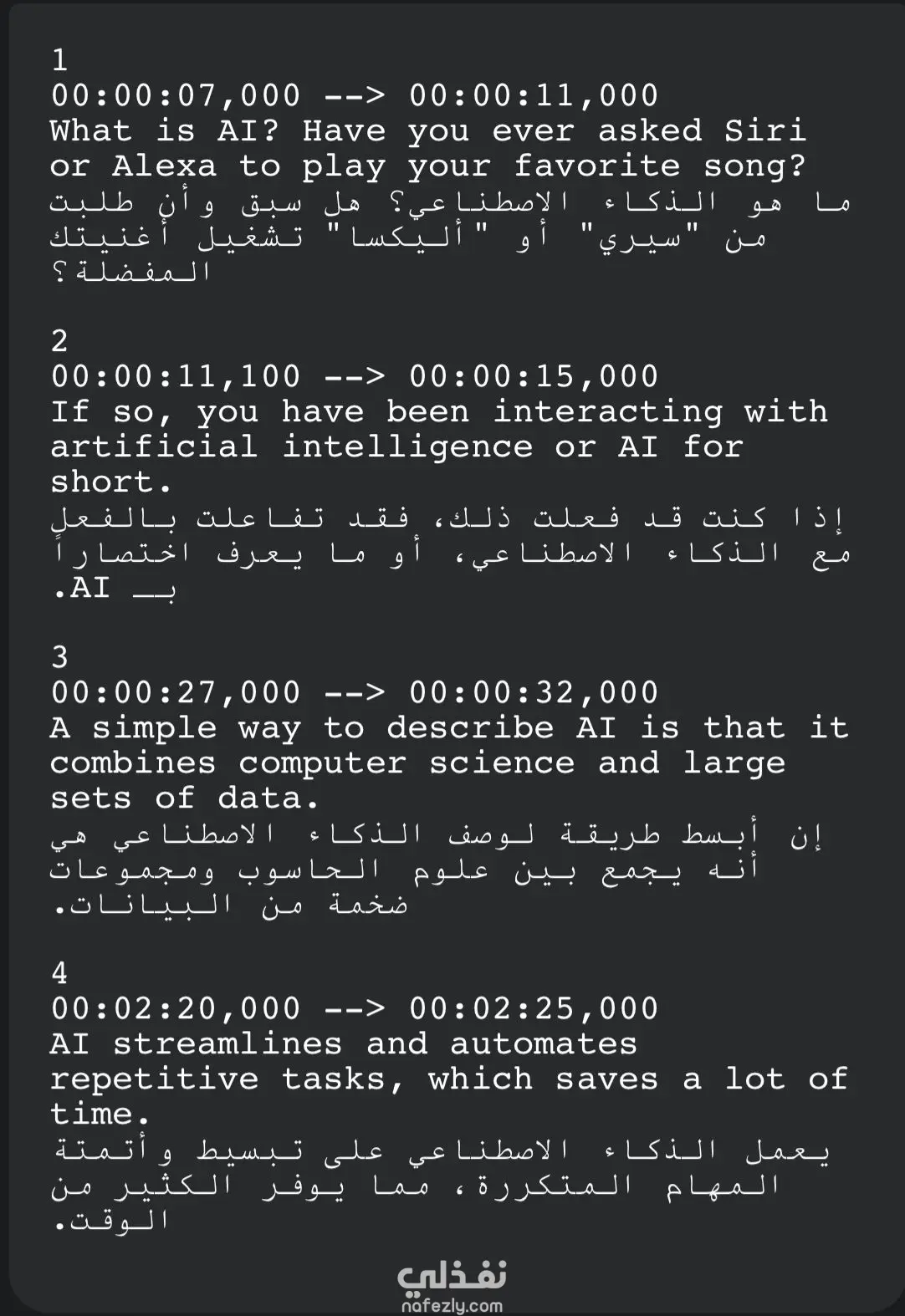 "In this project, I translated and edited an educational video from English to Arabic, delivering a fully synchronized subtitle file in SRT format. My work focused on crafting a smooth, culturally-relevant translation for the Arab audience while maintaining strict time-coding accuracy to ensure the text perfectly matches the audio. I also adhered to professional subtitling standards regarding character limits per line to ensure maximum readability for viewers." قمت في هذا المشروع بترجمة وتدقيق مقطع فيديو تعليمي من اللغة الإنجليزية إلى العربية، مع إنشاء ملف ترجمة مرئية بصيغة (SRT). تضمن العمل صياغة الترجمة بأسلوب سلس يراعي السياق الثقافي للمشاهد العربي، مع الالتزام التام بضبط التوقيت الزمني (Time-coding) لضمان مطابقة النص للصوت بدقة عالية، ومراعاة عدد الحروف المسموح بها في كل سطر لسهولة القراءة."