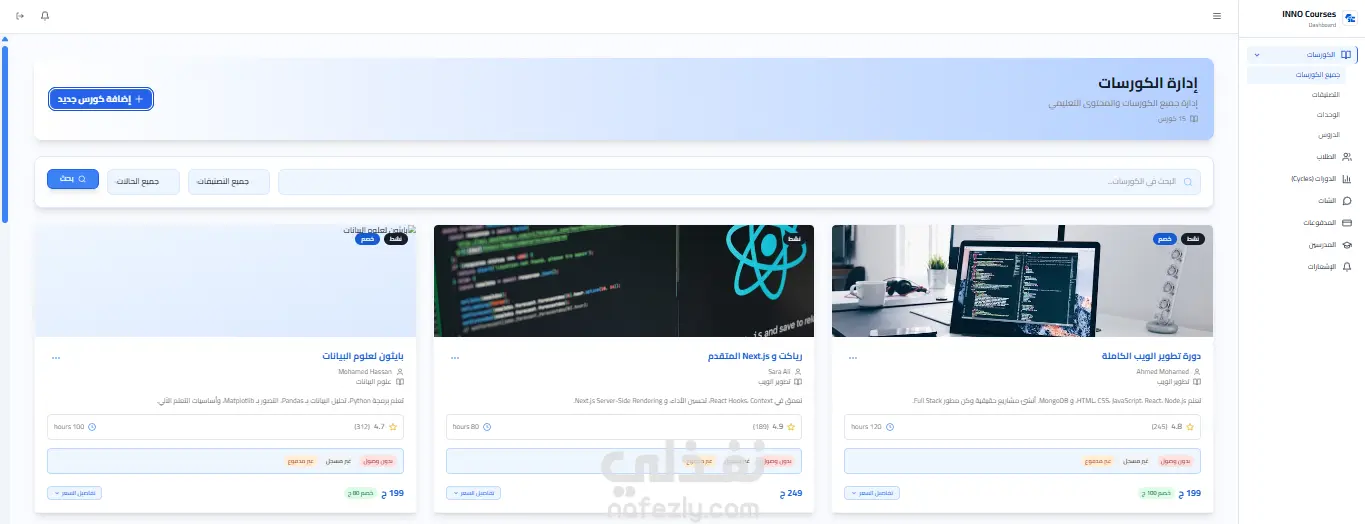 لوحة تحكم متكاملة لإدارة منصة تعليمية