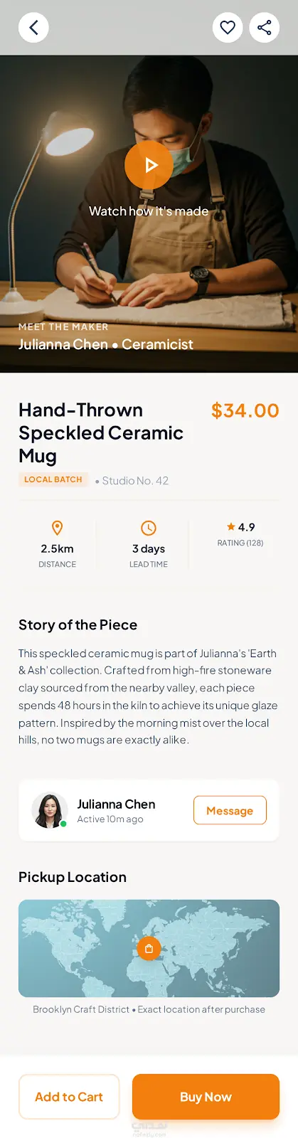 منصة تجارة إلكترونية مبتكرة تعتمد على الموقع الجغرافي، تهدف لربط الحرفيين والفنانين المحليين بالمشترين في محيطهم الجغرافي (نطاق 10 كم). يجمع المشروع بين تجربة بصرية غامرة لعرض قصة المنتج عبر الفيديو، وأدوات إدارية متطورة للحرفيين لتتبع طلباتهم وتنمية أعمالهم المحلية.