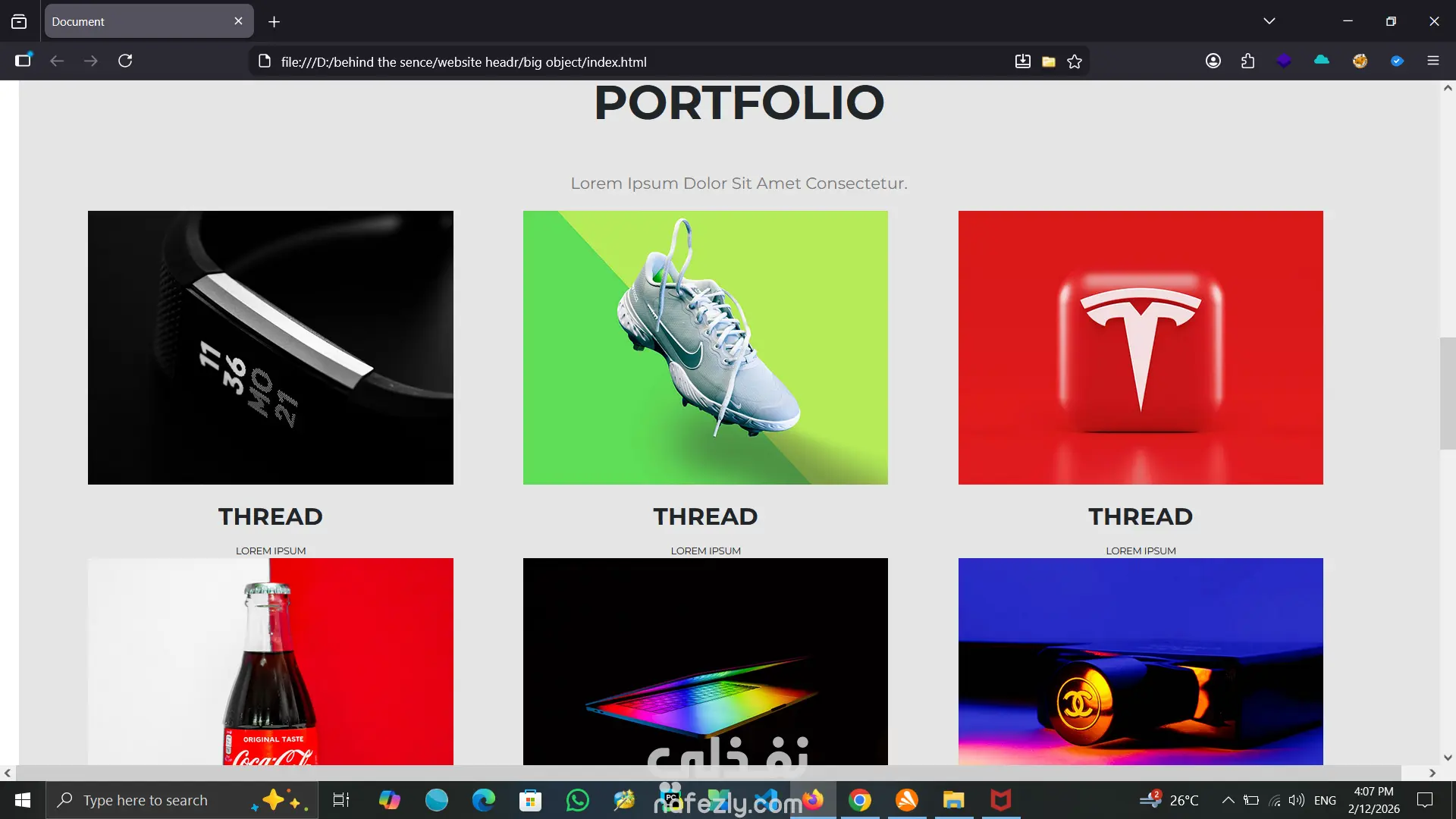إنشاء متجر إلكتروني كامل (واجهة أمامية فقط) لعرض المنتجات بطريقة احترافية ومتجاوبة، بدون استخدام JavaScript أو Back-End.