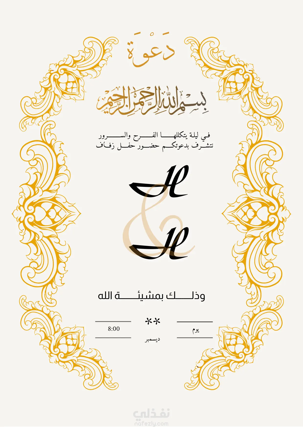 تصميم دعوة زفاف مخصصة بأسماء العروسين