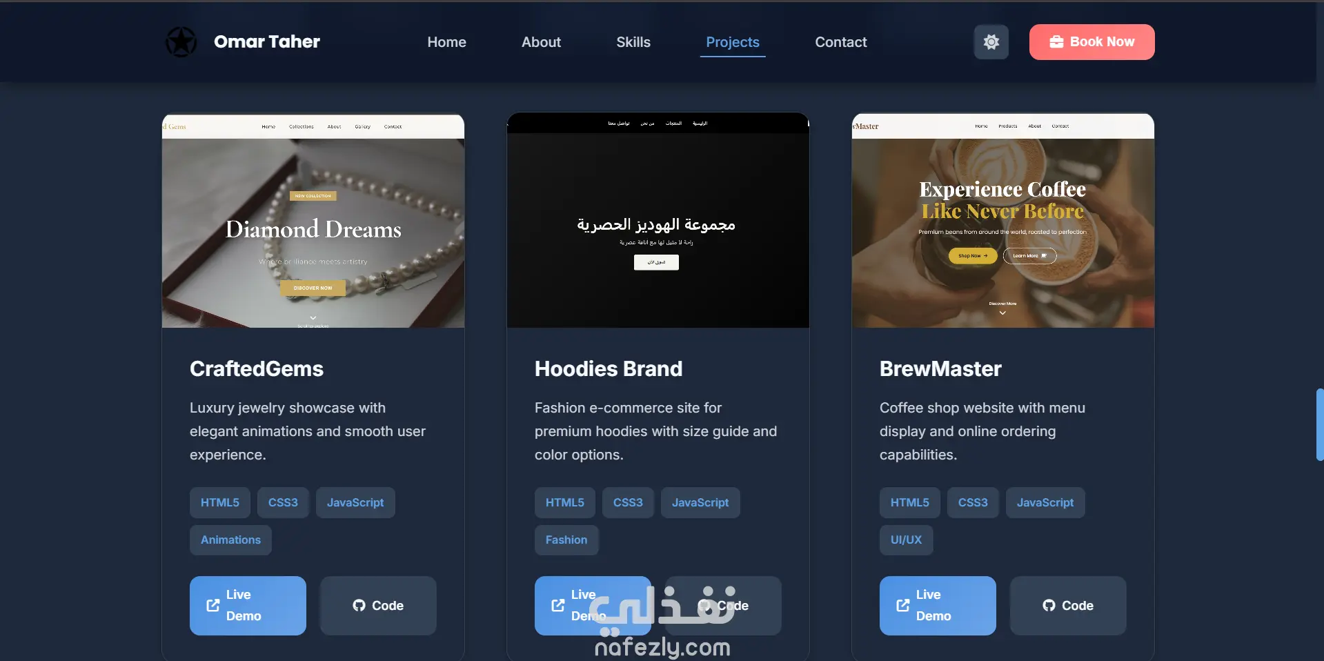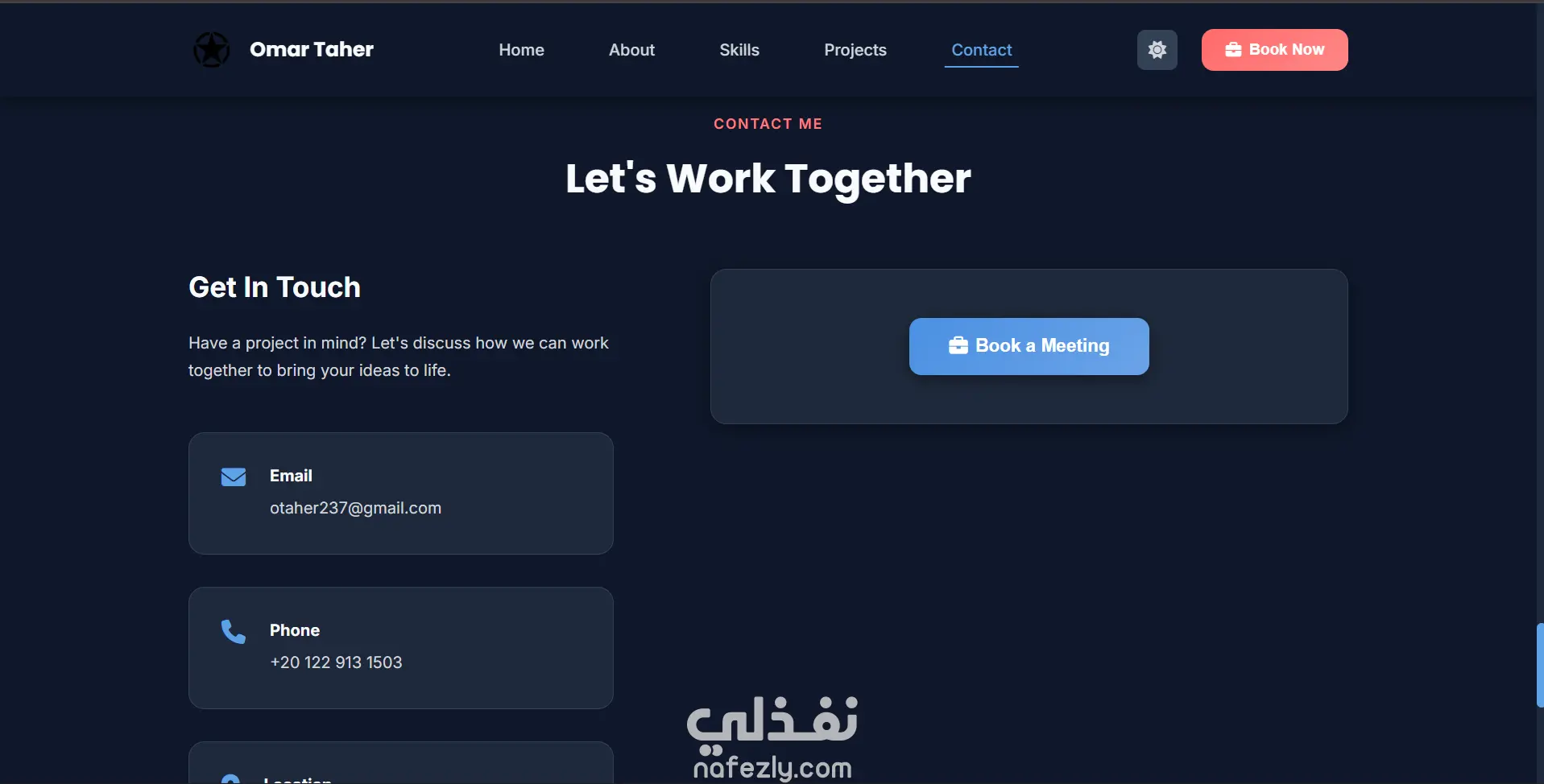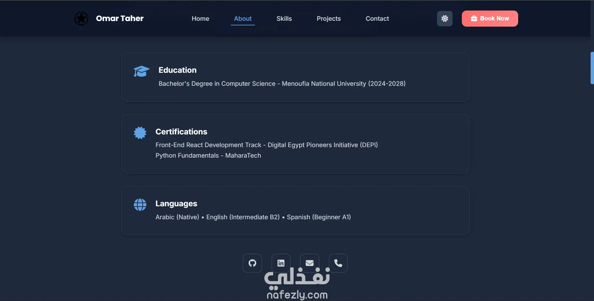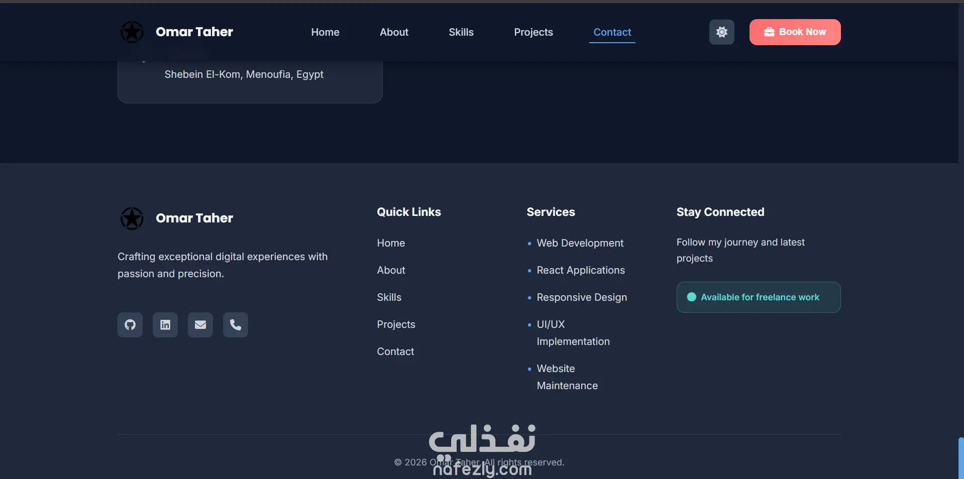 هل نفسك يكون عندك بورتفوليو مش بس شكله جامد، لكن كمان عملي وذكي؟ أنا أصمملك موقع بورتفوليو حديث وعصري، وكل شخص يحجز أو يتواصل معاك، بياناته تتجمع تلقائيًا في Google Sheets بشكل مرتب وسهل، من غير أي تعب. تصميم سلس، تجربة مستخدم ممتازة، وتحكم كامل في كل شيء، وكل ده في موقع واحد بيشتغل زي “مساعد شخصي رقمي” ليك. مميزات الخدمة تصميم عصري وجذاب موقعك هيلفت الانتباه من أول لحظة، تصميمه حديث ويعكس احترافك بشكل كامل جمع بيانات العملاء تلقائيًا كل شخص يحجز أو يتواصل معاك، بياناته تتسجل مباشرة على Google Sheets بشكل مرتب وسهل، من غير أي تعب. تجربة مستخدم سلسة كل الزوار يقدروا يتنقلوا في الموقع بسهولة وسلاسة على كل الأجهزة، سواء موبايل أو كمبيوتر. تحكم كامل وسهل تتحكم في كل شيء من المحتوى للتصميم والبيانات بدون أي تعقيد أو خطوات معقدة.